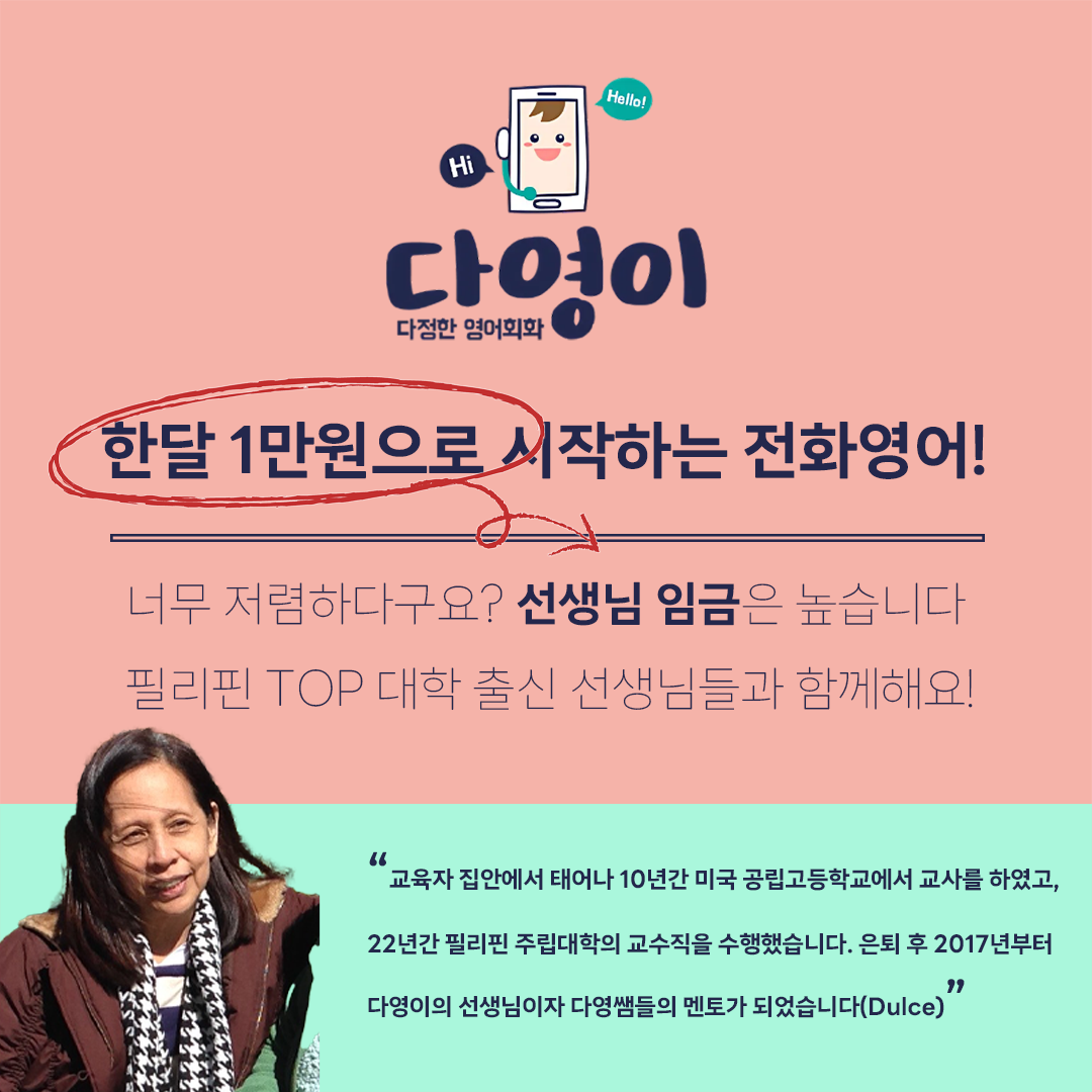 Subject   한달 1만원으로 시작하는 전화영어, 다영이 영어회화&커뮤니티