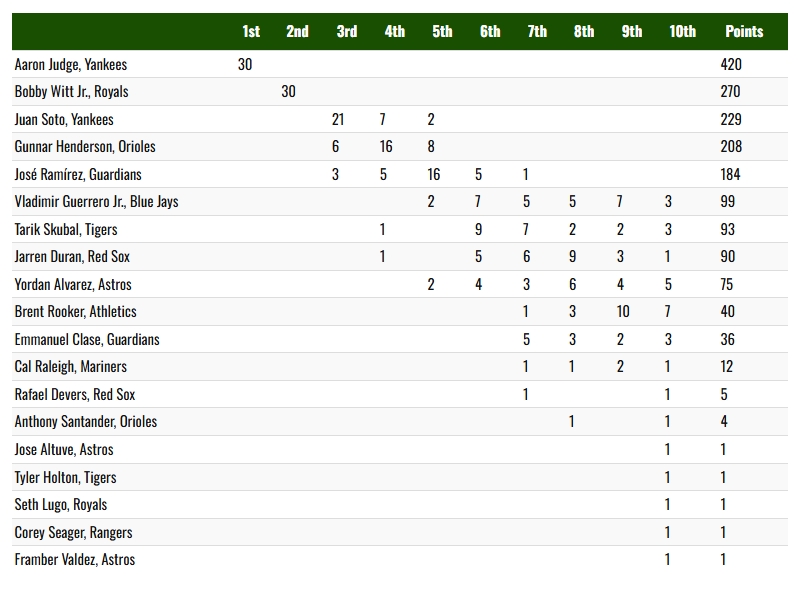 역대 양키스 소속 MVP 2회이상 수상 6번째 선수가 되었습니다(조 디마지오,요기 베라,미키 맨들,A로드,로저 매리스)