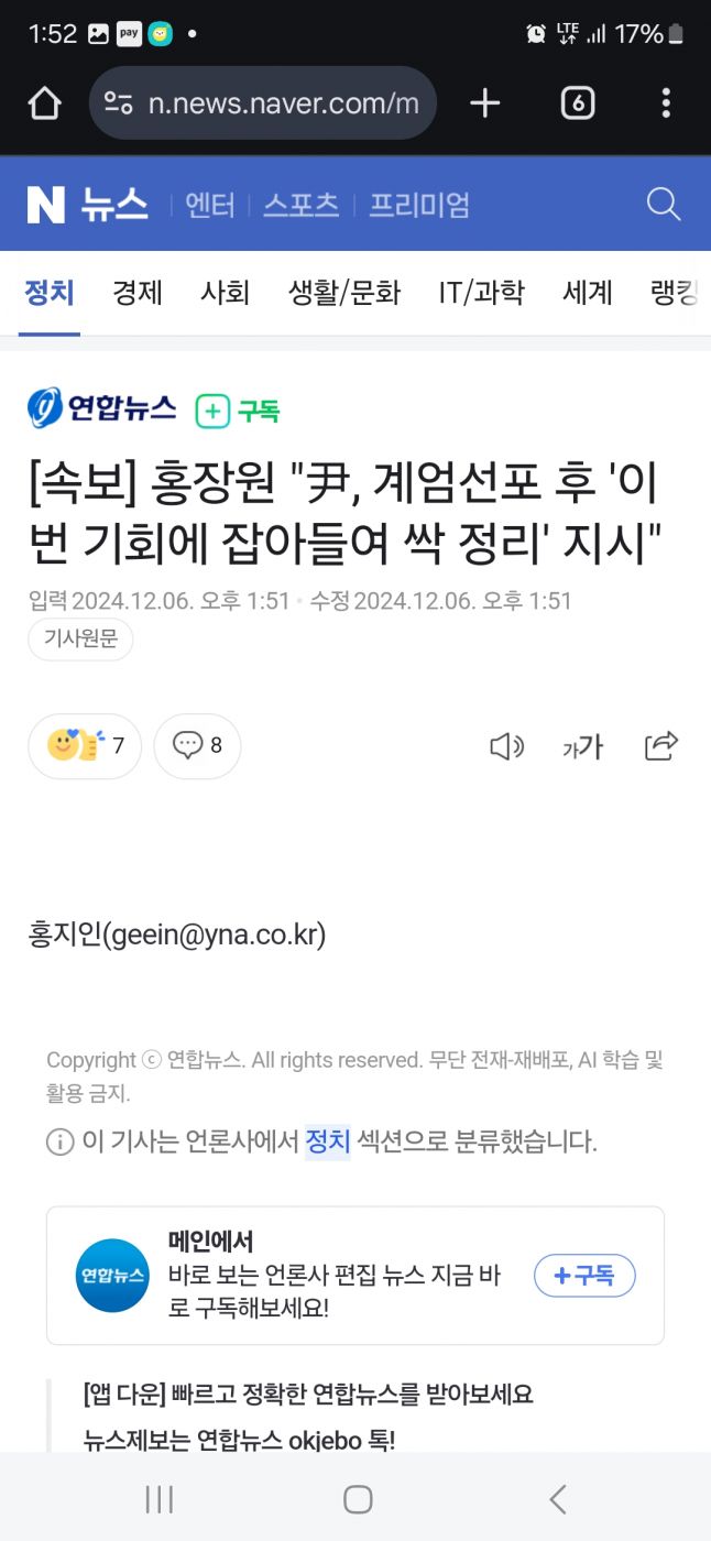 Subject   [불판] 12/6 (금) 대통령 불법 계엄