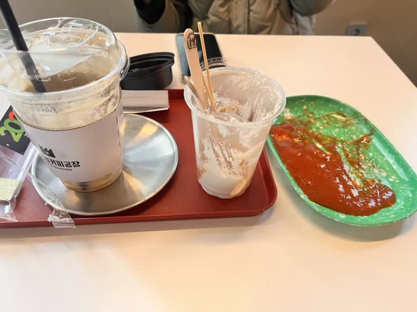 회사앞 카페입니다. 오늘도 평범하게 담당자분과 회의를 하고 있는데요.