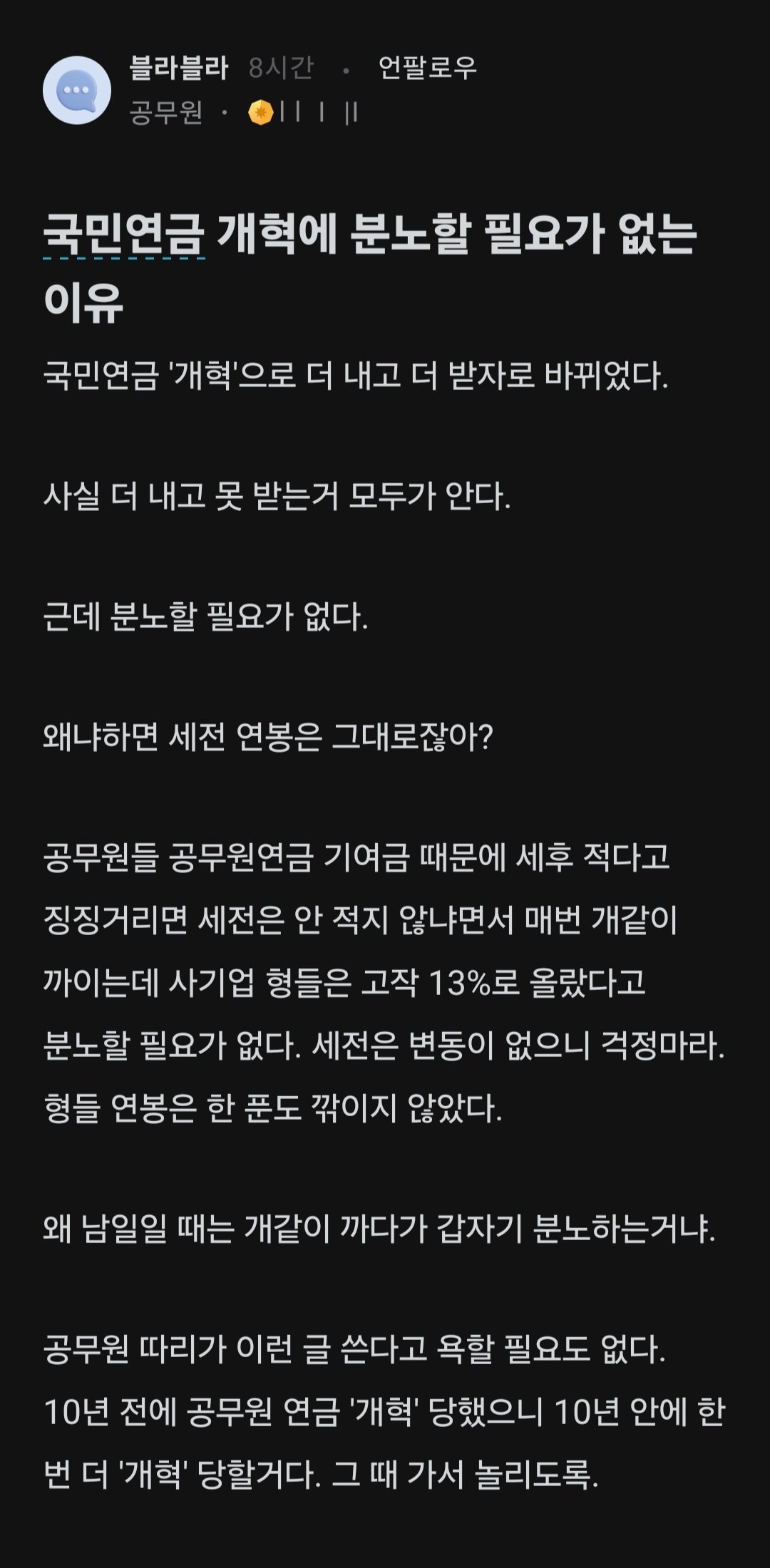 15325 사회한국 시민의 일원으로 연금개혁을 환영하며 30 카르스 25/03/20 3064 8
