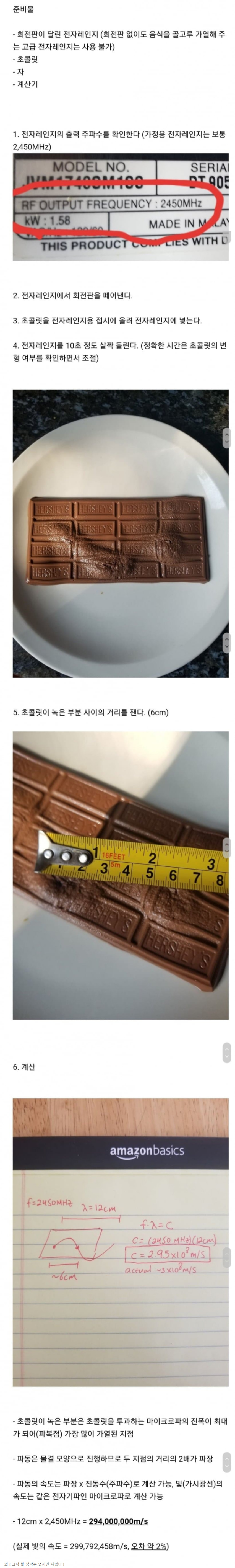 아 그리고 그 인터넷 떠도는 속설 중에 전자렌지의 전자파가 물 분자의 진동 숫자 어쩌구랑 잘 맞아 떨어져서 전자레인지에 물이 데펴지는 거다라는 속설이 있는데 그건 대체로 사실이 아니라고 합니다.