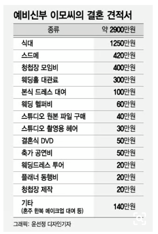 우선 짤에서 식대는 앞서 언급했으니 넘어가고(하객 1인당 식사비)