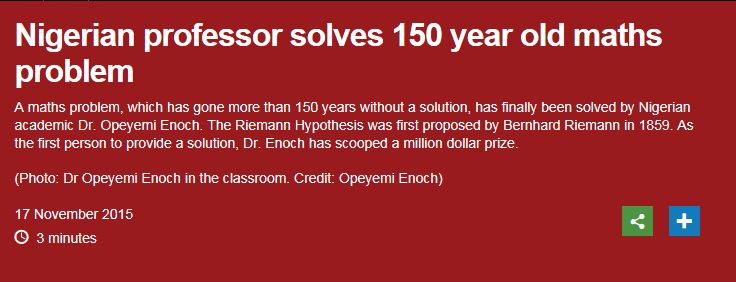 논문이 나온게 아니라 뭐라 말하기 어렵지만, Dr. Opeyemi Enoch이라는 나이지리아의 교수가 150여년만에 리만가설을 풀었다고 합니다.