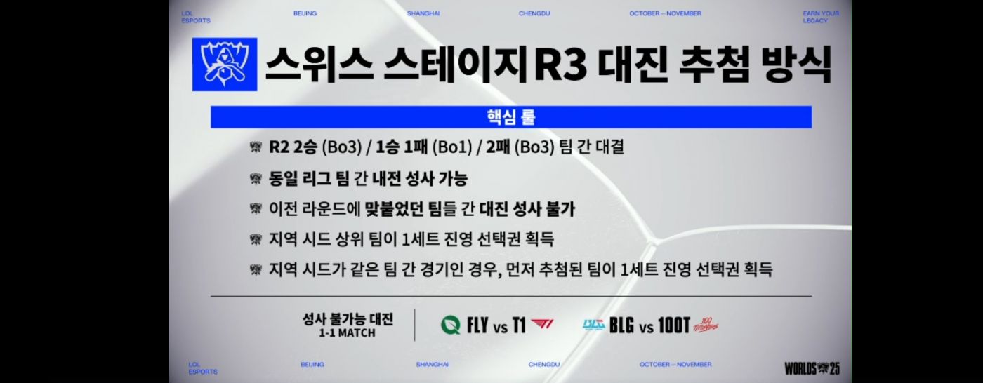 2025 리그 오브 레전드 월드 챔피언십 스위스 스테이지 3라운드 1일차(중국,베이징 Smart Esports Center,25.20버전)