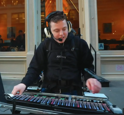 이분이 뭘 하냐면, 위 사진에 보이는 자작 포터블 음악 스튜디오를 메고