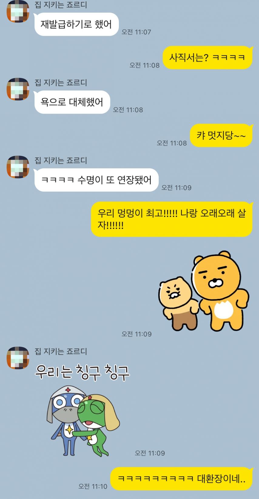 어제 와이프가 밤새 뒤척이더군요. 무슨 일인가싶어 물어보니, 뭔가 중요한걸 분실했다고 ㅋㅋㅋㅋ 내일 결국 재발급 신청을 하기로 했지만 욕먹는걸 피할수는 없을거라면서 출근을 하더군요. 궁금해서 카톡을 해봤는데 생각했던 대로였습니다. 저도 평상시 엄청 욕먹어서 아마 우리부부는 채소🥕!!!!!!! 100년은 넘게 살거 같아요.ㅋㅋㅋㅋ 2