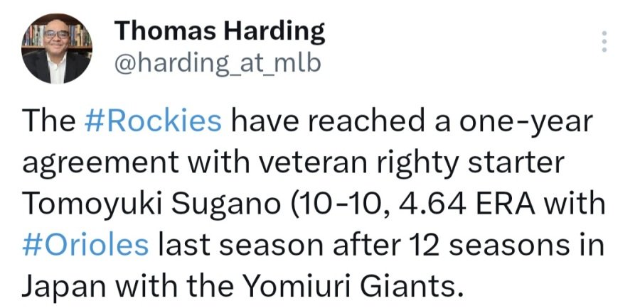 안녕하세요 김치찌개입니다! 스가노 도모유키가 콜로라도와 1년 계약을 했네요 구체적인 계약금액은 안나왔고요 요미우리에서 12년동안 276경기 136승 74패 평균자책점 2.43 1,857이닝 1,585K WAR 55.6 요미우리 프랜차이즈 스타이자 사와무라 2년 연속수상을 했었지요 2025시즌 30경기 선발 10승 10패 평균자책점 4.64 157이닝 106K WAR 1.2로 아쉬운 성적이였습니다 0