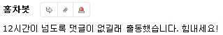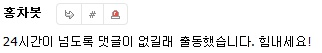 홍차봇님이 "24시간이 넘도록 댓글이 없길래 출동했습니다. 힘내세요!" 라는 댓글이 생기네요