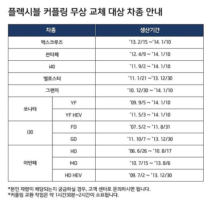 Subject   현대기아차 플렉시블 커플링 무상수리 해준다네요.