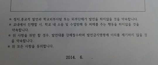 “각서에 사인 하지 않으면 작품이 철거당할 수도 있고, 졸업을 못할 수도 있다고 했다.”
