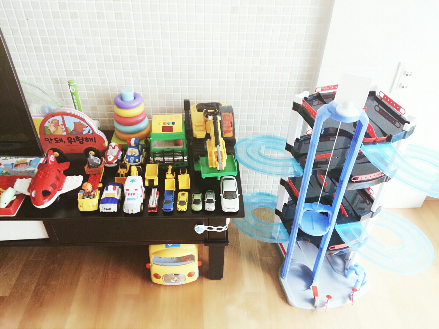 엄마인 저는 아기가 담는 족족 꺼내서 번개같이 번호대로 정리를 하면서 "하나만 사기로 했지? 하나만 골라봐~" 하고 애원합니다. 알아들은건지 귀염터지는 목소리로 " 응" 하고 또 자동차를 세개씩 집어넣습니다. 그 뒤로는 무한반복...말귀는 알아듣는데 말을 듣지는 않아요. 하아.