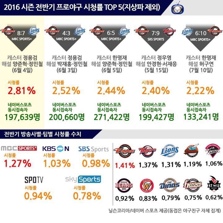 3286 스포츠상반기 크보 시청률 정리 15 Leeka 16/07/18 4078 0