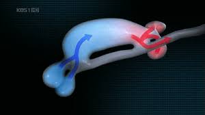 첫짤에서 산소가 들어와 끝 두개의 방중 아래로 들어가면서 흡입되는 산소는