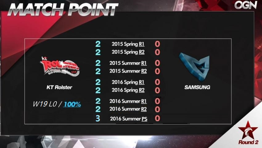 오늘의 승리가 특히나 더욱 뜻깊은 이유는 천적 중의 천적, KT 롤스터를 상대로 거둔 신승이기 때문입니다. 여러분도 아시다시피 신삼성은 KT를 상대로 단 한 세트도 따내지 못 했습니다. 사실 작년까지는 그러려니 했지요. 이제 막 급하게 선수들 모아서 재창단한 수준의 팀에게 무얼 바라겠습니까. 하지만 앰비션과 다른 선수들을 영입하며 전력을 대폭 보강한 올해까지 징크스가 이어져 전패를 기록했습니다. 뭐랄까, 신흥강팀이 감히 넘볼 수 없는 리그오브레전드 최강국 대한민국의 3강팀의 막강함이 느껴졌지요 매경기.