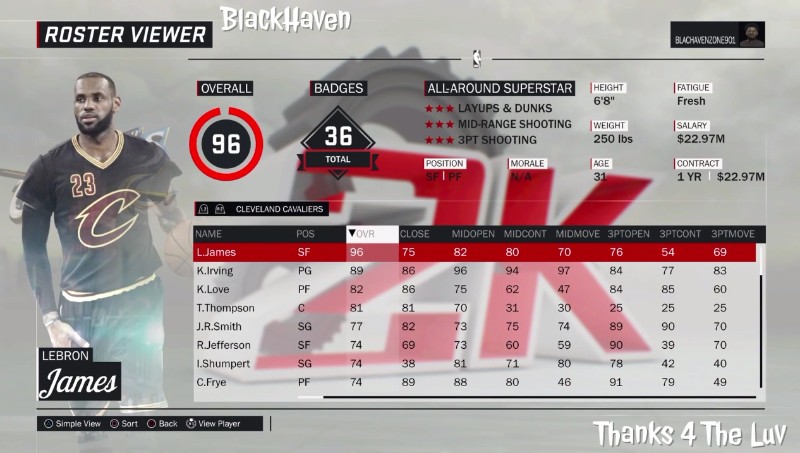 * 유출된 르브론과 커리의 능력치. 2k17 부터는 슛 능력치가 오픈 / 컨텍 / 무브 3개로 분류되서 적용됩니다. 구장 30개의 '버저비터 소리' '공 튕기는 소리' '골을 넣었을 떄 그물과 같이 나는 소리' '구장 별 고유의 응원 소리' '구장 별 고유의 골 넣었을때 음성과 기타 소리' 와 같은 모든 '30개 홈 구장 별 특징을 직접 가서 따서 적용했다고 합니다' -.-; 예판 구매했는데 정말 기대되게 만드네요.. 내일모래면 마이커리어 프롤로그도 공개되는만큼 본격적으로 달려볼수 있을듯! 2