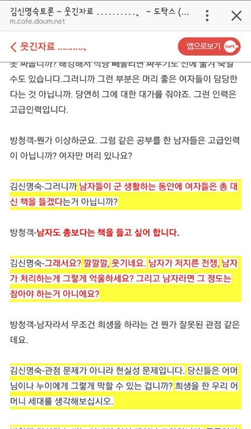 위 그림은 조작이 포함된 것이고, 한 때 발언자가 '김신명숙' 대신  '윤남인숙'으로 알려진 적도 있었죠.