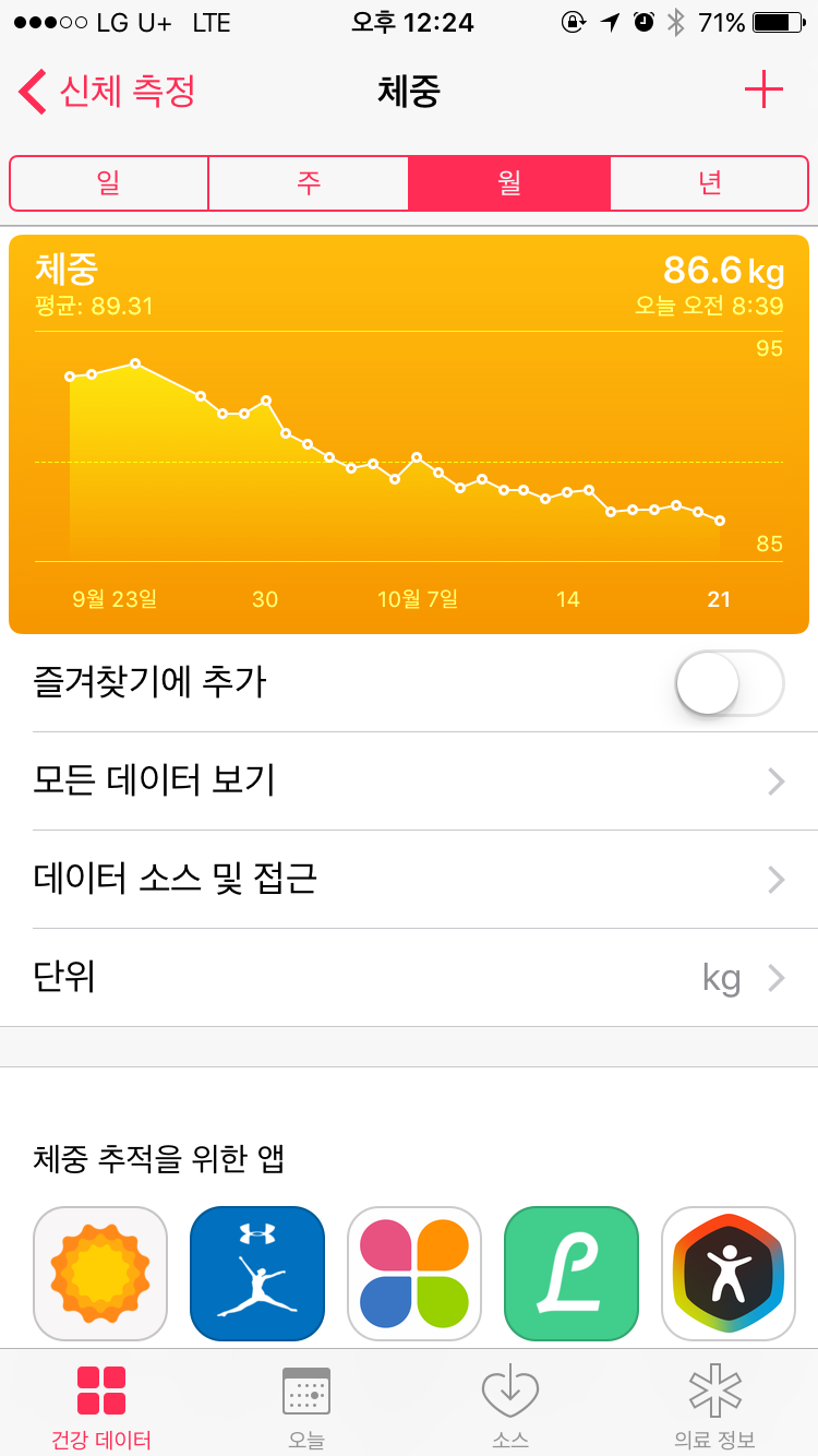 샤오미 mi scale 체중계가 집에 도착한 후 부터 다이어트를 시작했습니다. 9월 20일 부터 시작했고, 그날은 96kg이 찍혀 있는데 이 그래프에서는 안 나와있네요. 원래는 탄수화물 섭취량을 줄이고 퍽퍽한 고기로 한끼를 때우는 것 부터 시작하다가, 며칠 후에 LCHF를 알게 되어서 제대로된 LCHF는 25일부터 시작했어요. 25일의 몸무게는 93.5kg이 찍혀있네요. 오늘 아침 몸무게가 86.6kg니까 순수 LCHF만으로 7kg 가 빠진 셈입니다. LCHF 식단이 누구에게나 쉬운 방법은 아닌거 같아요. 저희 어머니는 딱 3일 하시고 구역질나서 못하겠다... 라며 탈출하셨습니다. 다만 저는 굉장히 즐겁게 다이어트를 하고 있는데 그건, 제가 그간 해왔던 다이어트 방법이 워낙 힘든 방법이여서 그것과 비교되어서 그런것일 수도 있고, (https://www.redtea.kr/?b=31&n=5009&c=22542 참조) 제가 워낙 기름진 음식을 좋아하고, 빵 쌀 과일 이런것들을 별로 좋아하지 않아서 그런것 같기도 해요. 다만 질리지 않게 식단을 짜는건 어려운데, 주로 소스를 최대한 다양하게 쓰는 방법을 쓰고 있습니다. 비용을 줄이기 위해서 대형 마트에서 싼 부위의 고기들을 많이 사와서 얼려서 보관하는 방법을 쓰게 되는데, 그렇게 하면 아무리 고기를 좋아해도 질릴수 밖에 없더라고요. 그럴때 주로 파스타 소스 (1숭2님의 아이디어를 빌린건데) 들을 쓰고 있습니다. 파스타 소스들의 성분표를 보면 탄수화물 함유율이 낮은 제품들이 꽤 많더라고요. 그리고 한국인이니까 당연히 맵고 자극적인게 끌릴때가 있는데, 그럴때는 뼈해장국이나 순두부찌개, 돼지국밥, 추어탕, 순두부찌개 이런것들을 먹어요. 최근에는 해산물들도 애용하고 있습니다. 몇달 전에 방영했던 SBS 다큐를 보면 극단적인 다이어트는 식욕관련 호르몬 분비에 이상을 불러일으킬 가능성이 높다고 하던데, 여러 자료에 따르면 이 방법은 오히려 식욕관련 호르몬 분비를 정상으로 되돌린다고 합니다. 저는 이 점을 이 다이어트의 가장 큰 장점으로 생각합니다. 짐작하기에 저도 식욕관련 호르몬 분비에 이상이 있었거 같기도 해요. 정말 먹어도 먹어도 배가 안부르던 때가 있었거든요. 그런데 신기하게도 LCHF 다이어트를 시작하자마자 부터는 식욕이 엄청 줄었어요. 야식 생각을 거의 안하게 되더라고요. 이건 저한텐 엄청난 변화입니다... 그리고 부작용이 조금 있었는데, 널리 알려진대로 몸살이 걸린것 처럼 아픈 때가 한번 옵니다만, 견과류나 카카오닙스를 잘 챙겨 먹었더니 잘 견뎌낸것 같아요. 그 외에 별 다른 부작용은 없는거 같... 아, 없던 변비가 생겼네요. 도시락을 싸들고 다녀야 한다는게 좀 귀찮긴 하지만, 그래도 맛있는걸 먹으면서 살을 뺄수 있다는 점이 좋은것 같습니다. 이상 4주간의 LCHF 중간보고를 마칩니다. 0