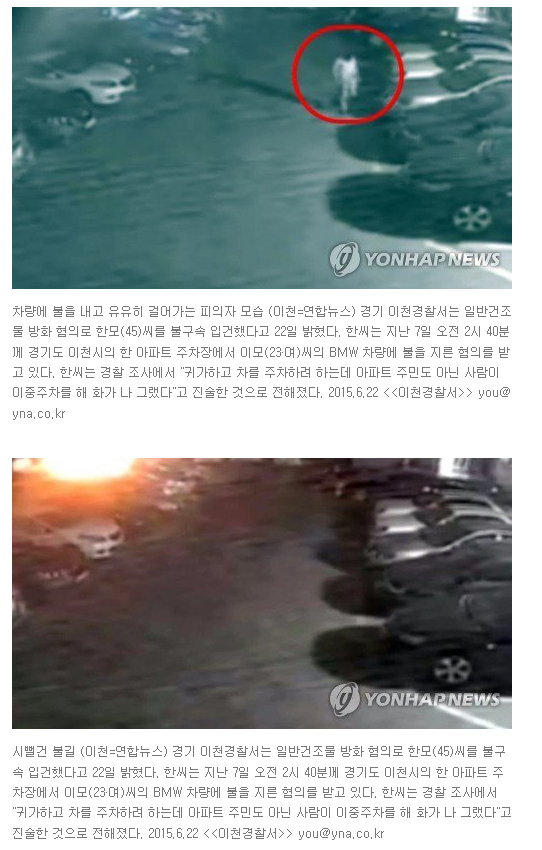 401 기타'이중주차에 불만' 아파트 주차장서 차량에 불 질러 46 지니 15/06/22 8541 0
