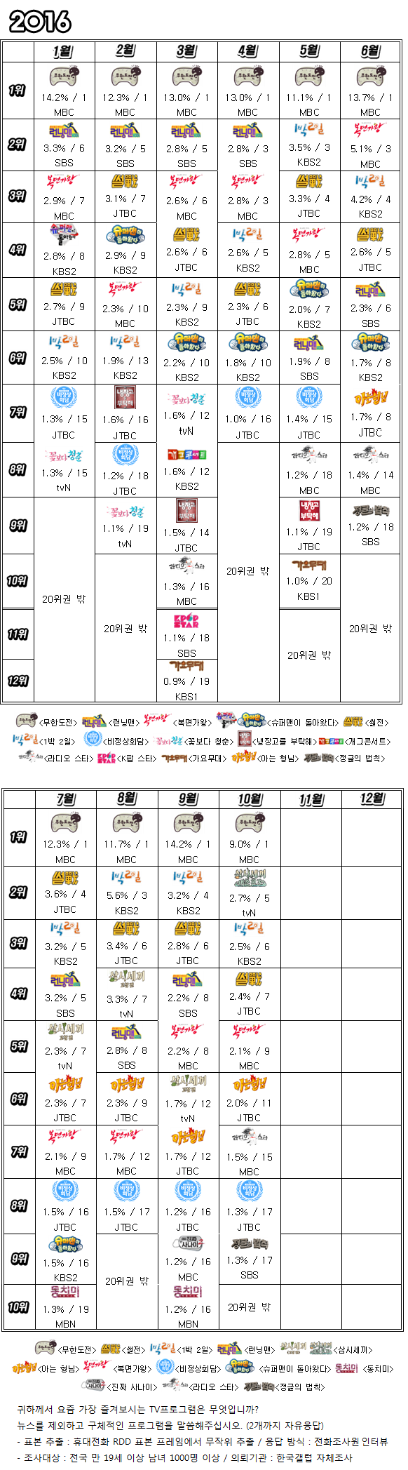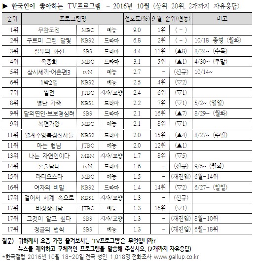 | Subject | 10월 갤럽 예능 선호도순위와 코멘트 |