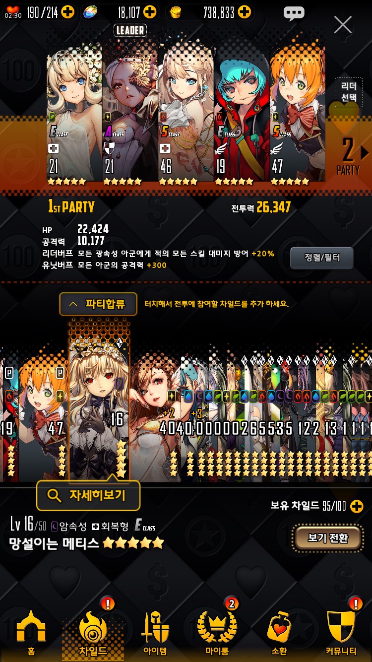 남는 시간은 그냥 5성 렙업 돌리려고 5성들만 5명 세팅해서 하드 6-2 자동 돌리는중..)