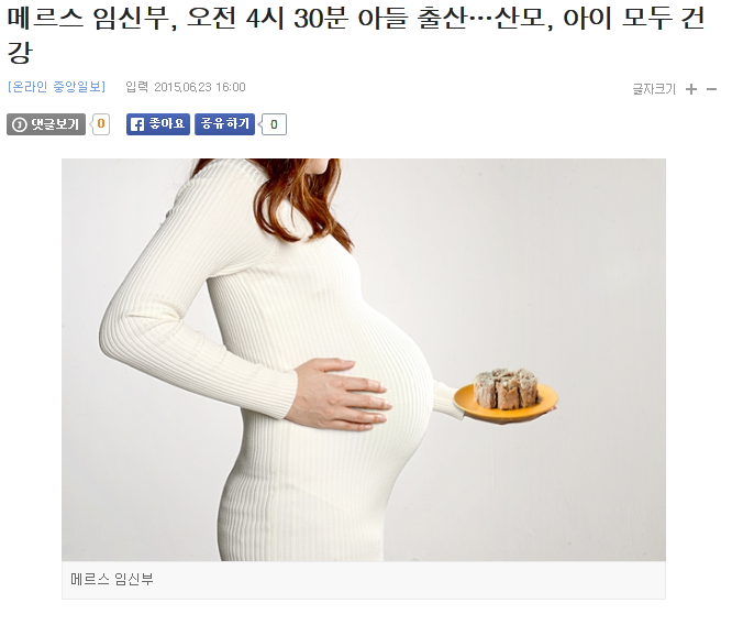 23일 새벽에 메르스에 걸리신 임산부께서 출산하셨다네요
