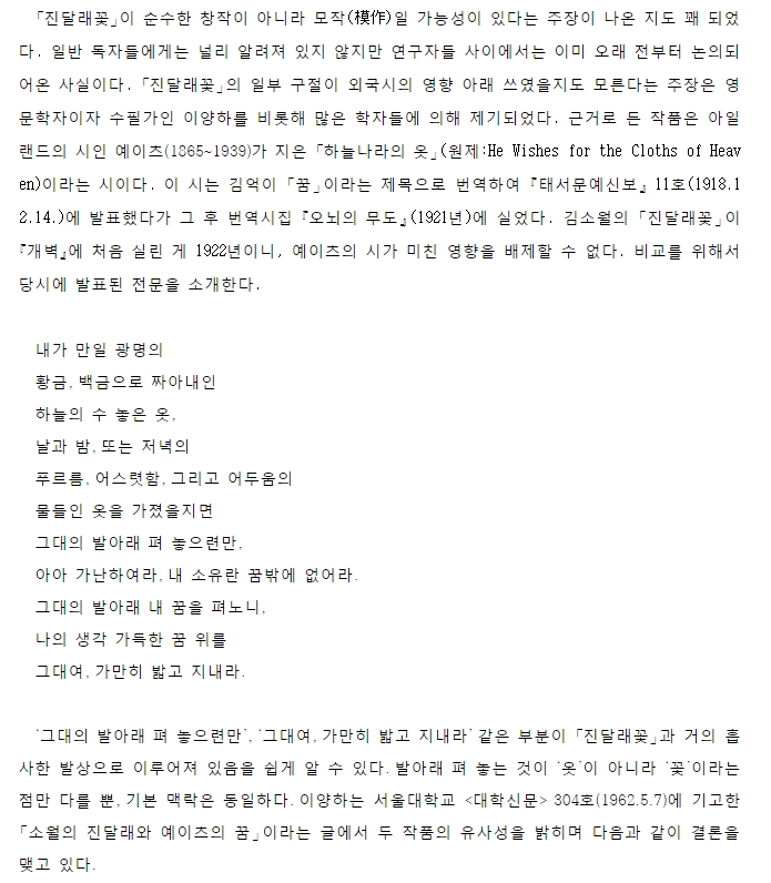 여기 나온 예이츠의 하늘나라의 옷 (김억은 꿈이라는 제목으로 번역해서 실었습니다)은 그렇다 치고...