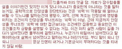 제가 모 사이트에서 본 댓글인데 좀 격하긴해도 영상 내용에 대해서 잘 설명하고 있는 것 같아 첨부합니다