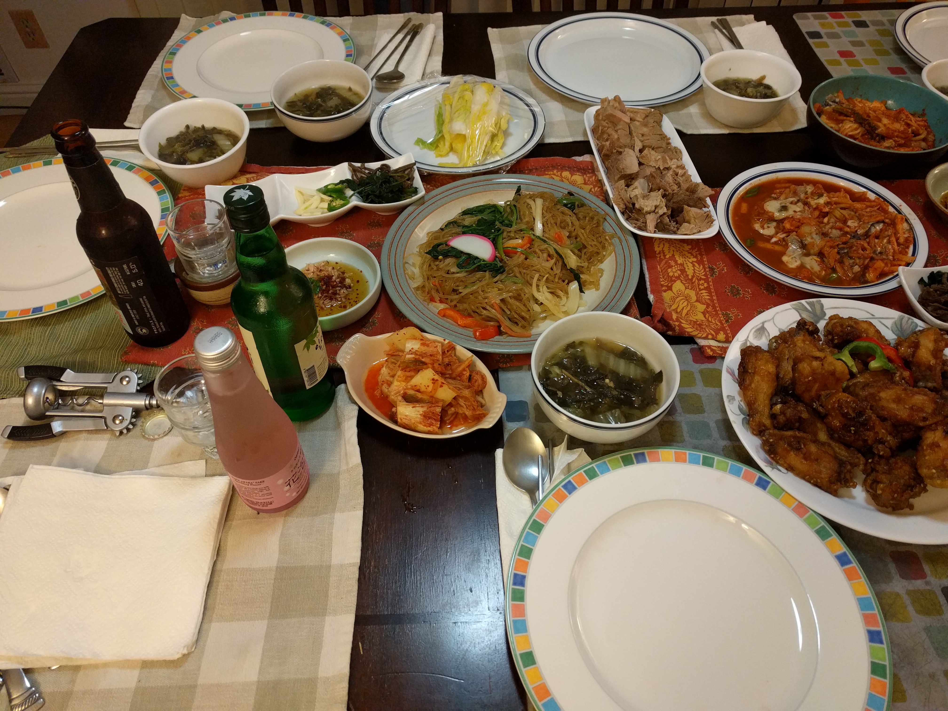 돼지고기 보쌈 시켜 먹으셔도 되는데, 집에서도 간단하게 만들 수 있어요. 간단함이란 냄비에 재료를 넣고 끓이면 되니 간단하지 않나 싶습니다. 돼지고기 수육 삶는 방법입니다. 고기는 수육용고기 혹은 Butt, Shoulder 부위로 기름이 적절하게 살과 비계가 골고루 잘 섞여 있는 부분이 맛있어요. 그리고 고기사고 바로 그 날 해 드셔야지 냄새가 안나더라구요. 미국서는 동네 미국마켓에서 사면 냄새가 덜 나는 편이에요. 중국마켓 한국마켓서 유통상태에 따라서 이미 냄새가나있는 고기를 살..실패할 가능성이 좀 있구요. 1킬로-1.5킬로 (2-3파운드)정도의 고기를 한다고 하면... 냄비에다 물을 반 정도 붓고 고기가 잠길 정도가 되면 되어요. 제가 넣는 재료는: 고기, 물, 양파중간사이즈 1개, 대파나 쪽파 2-3줄기 적당량 , 마늘 한 통 8쪽 정도 납작하게, 생강 1-2톨 편으로 납작하게 썰기, 통후추(없으면 갈아놓은 후추), 된장 2-3스푼, 정종 반 컵 추가로: 갈아놓은 커피, 월계수 잎 등등...있으면 넣고 없으면 안넣어도되어요. 정종 대신 소주 사용해도 되지 싶어요. 고기의 냄새는 마늘 생강 정종 술과 된장으로 잡내를 잡아준다고 보시면 될꺼에요. 일반 냄비로 45분 정도, 압력밥솥으로는 고기 사이즈에 따라서 12분에서 20분 사이... 끓이기 등등 달라요. 고기 익었는지 꺼내보시고 젓가락으로 찔러보거나 살짝 잘라보셔서 피나면 좀 더 끓이시면 되어요. 물론 그 사이에 무채김치, 배추 절여놓은 것, 새우젓갈+마늘+파+참기름, 쌈장, 마늘고추 채썬것 등을 남는 시간에 준비해두시면 보쌈 해 드시면 한끼 푸짐하지요. 지역과 가족 기호에 따라서 삼겹살 혹은 돼지갈비로도 보쌈을 할 수가 있어요. 저는 돼지비계가 살짝 겹쳐져있는 부드러운 목살을 가장 좋아해요. 맛있게 드세요. 저는 소주랑 정종은 안마셨는데 스파클링 정종 분홍색병 참 맛있네요. 맥주처럼 와인처럼 탁쏘네요. 소주도 스파클링 소주가 있나요? 2