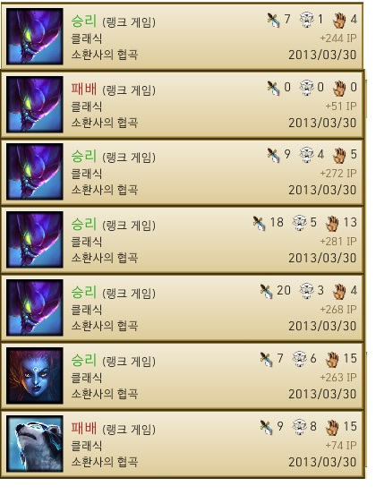 승급전 1승 상태에서 진행한 다음 판이 인베 때부터 상황이 여의치 않아 그냥 일찌감치 포기 (인베퍼블,정글처형, 탑솔킬 등)