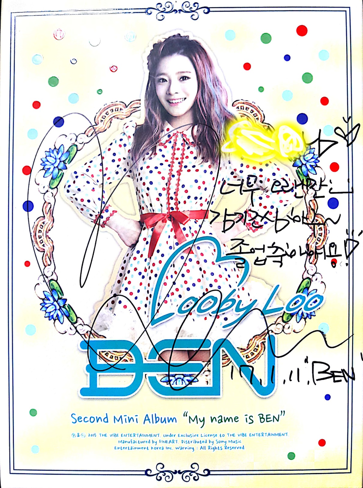 저는 제가 좋아하는 노래를 불러주신 분을 직접 만나뵈어서 존경한다고 말씀드릴 수 있다는 것이 영광이에요. 제 알량한 겉치레는 이분 앞에서는 아무 의미가 없어집니다. 늘 언제나 이분 앞에서 진심으로 서고 싶어요. 제 자신에게 최선을 다할 것이라고 이분에게 직접 약속했어요. 그래서 저는 제 자신에게 온 정성을 다할 거에요. 저도 제 위대한 꿈을 이룰 거에요. 지금 제 위치는 어두운 조그마한 방 안의 시공간적인 한 좌표에 있는 것뿐 그 이상이 아니지만, 저도 벤님처럼 멋진 예술작품을 만들어서 그 예술작품의 단 한 명의 독자라도 웃을 수 있게 만들 수 있었으면 좋겠어요. 벤님이 15년 후의 제 예술작품을 기다리고 또 기대해보겠다고 약속해주셨어요.