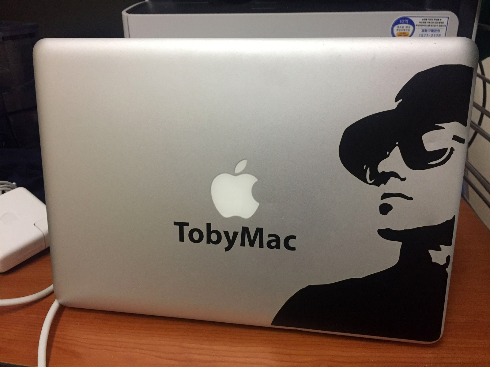 몇몇 분들이 본인의 닉네임을 소개하시니 저도 제 닉네임에 관련된 이야기를 풀어봅니다. 첨부한 사진은 제가 예전에 쓰던 구형 맥북에 커스텀 제작해서 붙였던 스티커입니다. 토비의 맥북이라 토비맥이라고 이름을 붙였습니다. 스티커로 그려진 멋진 선글라스의 남자는 Tobymac이라는 이름의 해외 뮤지션입니다. 제 영어 이름이자 닉네임인 Toby도 Tobymac의 영향으로 고르게 된거죠. 그래서 나름 중의적인 의미를 담아 이 스티커를 만들어 붙였었습니다 ㅎㅎ CCM이라는 음악 장르명을 들어보셨을겁니다. 종교음악중에서도 현대적인 기독교 음악을 부르는 용어로 CCM이라고 부릅니다. Contemporary Christian Music 의 약자입니다. 제가 이 단어를 처음 들었던게 1996년쯤 되었던 것 같습니다. 막 국내에서도 CCM이란 용어가 사용되기 시작하던 때였고, 당시 청소년이었던 저는 금방 CCM에 빠져들었습니다. 한창 신나게 가요든 팝이든 들을 시기인데, 당시 저는 근본을 알 수 없는 종교적 신념으로 세속 음악은 듣지 않겠다면서 기독교 음악만 들었거든요. 그러다보니 꽤나 올드한 노래들을 듣고 있던 참이었는데, 최신 유행하는 스타일로 다양하게 나오는 해외의 기독교 음악들은 제게 큰 만족감을 선사했습니다. '세상음악을 듣는다는 죄책감을 느끼지 않고도 유행에 뒤쳐지지 않는 음악을 들을 수 있다니!' 당시 기독교 백화점에서 잘 팔리던 해외 CCM 뮤지션 양대산맥으로 페트라(Petra)와 디씨톡(DC Talk)이 있었습니다. 페트라는 시원시원한 보컬의 락밴드 음악을 하는 팀이었고, 디씨톡은 파워풀한 랩뮤직을 하는 팀이었습니다. 저는 제 취향에 좀 더 맞는 음악인 디씨톡을 선호했고, 그들의 앨범을 닳고 닳을 때까지 들으면서 학창시절을 보냈습니다. 그 3인조 그룹 디씨톡의 리더가 Tobymac이었지요. 디씨톡은 1989년에 첫 앨범을 낸 팀입니다. 첫 앨범은 상당히 올드하고, 좀 심하게 구리다는 느낌이었습니다. 그래도 팬심으로 열심히 들었죠. 1990년에 발매한 2집 수록곡 I Luv Rap Music 입니다. https://www.youtube.com/watch?v=L4Nd7lZgp4o 2집을 지나 3집에 다다르면서 그 때 부터는 상당히 세련된 랩 음악을 들려줍니다. 그런데 4집에서는 헤비하고 무거운 락밴드 음악을 하는 팀으로 변모합니다. 당시 메가히트했던 곡으로 소싯적 CCM 좀 들었다 하는 분들은 잘 아실 Jesus Freak 이란 곡이 있습니다. https://www.youtube.com/watch?v=kbB0QrBIs9k 이후 디씨톡은 5집을 발매하고 활동을 이어가다가 2000년대에 들어서면서 부터는 각 멤버들이 솔로로 활동하기 시작합니다. 그래서 디씨톡의 리더였던 Toby McKeehan은 Tobymac이라는 활동명으로 활동을 시작하죠. 그리고 헤비한 락음악 위에 랩을 얹은 스타일로 지금까지 계속해서 활동하는 원로 CCM 아티스트로서의 명맥을 유지해오고 있습니다. 솔로활동을 하면서 히트시킨 곡이 다양하게 있지만 제일 맘에 드는 곡으로 이 곡을 골라봤습니다. The Slam 위 비디오는 라이브 버전이니 레코딩 버전으로 들으실 분은 아래 링크를 통해 감상하시면 되겠습니다. https://www.youtube.com/watch?v=MO3z9nBGMns 2