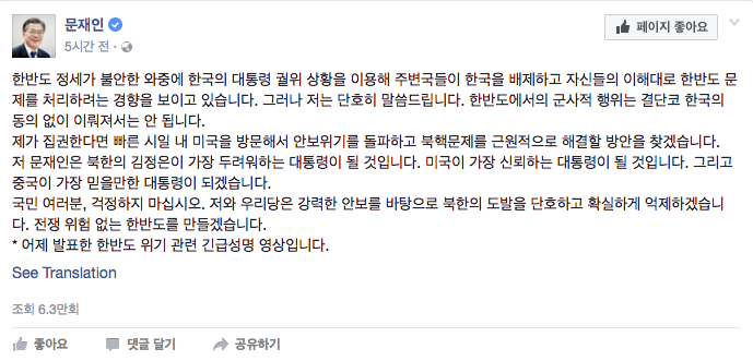 | Subject | 문재인 '한반도 전쟁 막겠다' 선언 영상 공개 |