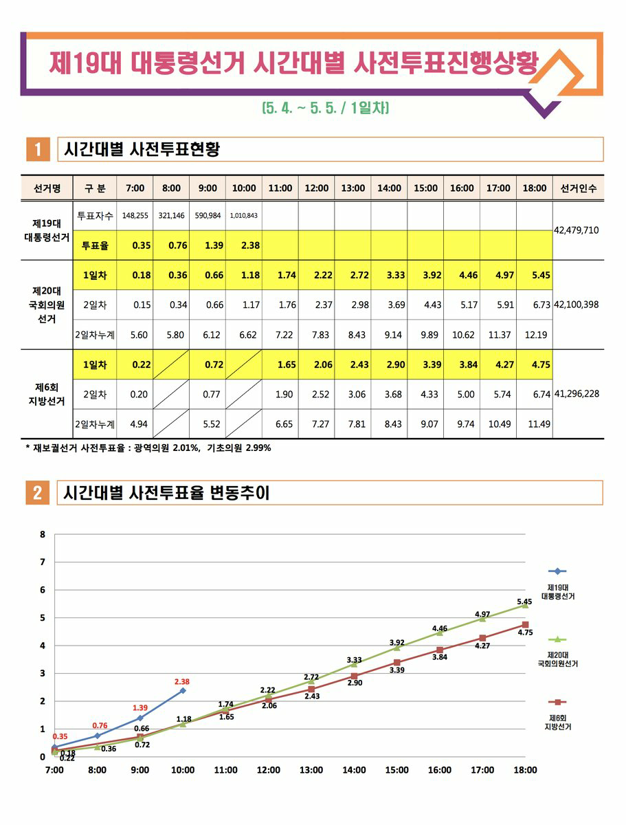 사전투표는 5월 4일 ~ 5월 5일 오전 6시 ~ 오후 6시에 진행이 되며,