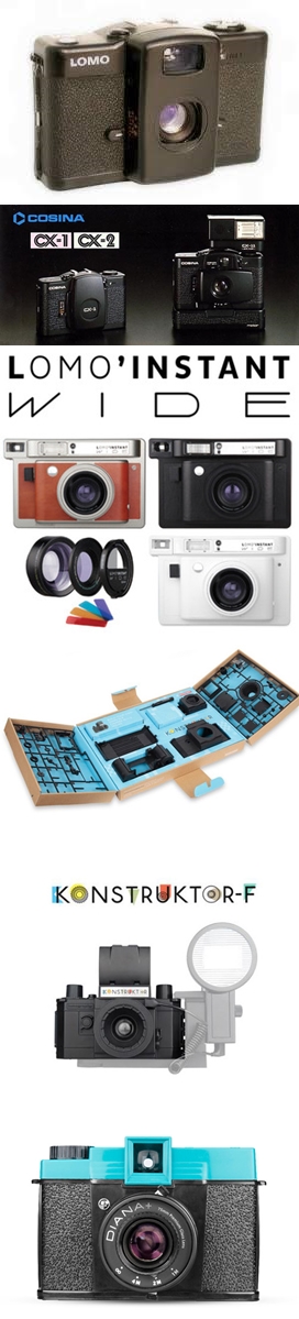 레닌그라드 광학기기 조합은 러시아의 카메라 회사입니다. Ленинградское Оптико-Механическое Объединение.라고 쓰고, 리닌그랃쓰꼬예 압찌까 메하니취스꼬에 압예지네니에라고 읽으며(저는 러시아어를 못합니다) 줄여서 .ЛОМО [로모]라고 읽습니다. 그렇습니다. 오늘의 주제는 로모그라필로 알려진 '로모'입니다. 로모 카메라가 뭔지는 다들 한번쯤 보셨을 겁니다. 비싼 토이카메라죠. 로모 홈페이지에는 다음과 같이 써있죠. "로모그래피의 세상에 오신 것을 환영합니다. 달콤한 냄새가 나는 로모그래피의 바다에 빠지는 일과 비교할 수 있는 것은 없습니다. 등을 기대고 편하게 앉아서 즐기세요. 아니면 로모그래피한 눈으로 본 어지러운 당신 주변을 저희에게도 보여주세요. 운 좋게 잡은 순간들, 이상한 사람들, 흔들려 찍혀 아무것도 아닌 것이 된 형상들, 로모그래피는 이런 모든 것을 모으고, 아끼고, 보여줍니다. 로모그래피 웹사이트는 당신의 사진들을 소화해낼 준비가 되어 있습니다.자, 축제를 시작하세요. 그리고 결코 잊지 마세요. 당신의 삶은 로모그래피, 그 자체입니다." 로모는 1984년 최초로 생산되어 1990년대부터 소위 '힙스터'문화의 아이템이 되어 여기저기 퍼지게 됩니다. 사실 렌즈의 성능이 극히 나쁘고, 광량에 대한 고려 없이 설계된 구조로 인하여 사진이 구석 부분이 검게 나오는 소위 '비네팅'현상이 나타나는 결함품이지만, 조악한 렌즈와, 조악한 설계가 구현해내는 독특한 느낌의 사진이 오히려 소구포인트가 되었던 것이죠. 로모의 [스펙]을 보면 노출: 자동노출식 크기: 10.5cm x 6cm x 4cm 무게: 250g 필름 포맷: 35mm (컬러 네가티브, 슬라이드, 흑백) 렌즈: Minitar1 32/2.8 (중국LomoLC-A+공장제작, 멀티코팅) 촛점거리:32mm (광곽버전의 17mm LC-Wide도 출시) 조리개: 오토(f2.8∼16사이) 셔터 스피드: 1/500초∼무제한(자동 노출) 노출: 프로그램 오토매틱, * 다중노출 스위치(MX) 내장 뭐 다른건 다 차치하더라도, '자동'이라는 말이 여기저기 나올 정도로 로모에서는 딱히 콘트롤해주어야 하는 지점이 별로 없습니다. 32mm라는 광각에 속하는 촛점거리와(물론 요즘엔 30mm 전후가 '신표준'이 되긴 했지만 말입니다), 알아서 조여주는 조리개, 넓은 포커스영역 등으로 아웃포커싱에 구애받지 않는, 팬포커스의 사진을 찍기 좋은 카메라가 되었죠. 조리개는 f2.8까지 지원하지만 셔터스피드가 1/500초까지밖에 지원하지 않아 거의 대부분의 상황에서 조리개가 어느정도 조여진, 깊은 심도의 사진을 찍는 카메라죠. 로모 홈페이지에서 소개하듯이 독특한 감각을 구현해내는 카메라라서 꽤 많은 사랑을 받고 있지만, 앞서 설명한 팬포커스와 조악한 설계로 인하여 사실 맘에 드는 사진을 찍기 굉장히 힘든 카메라기도 합니다. 거기다 디지털도 아닌 필름카메라다보니 아무생각없이 쓰기엔 또 어려운 카메라기도 하죠. 거기다 더하여 그 품질에 비해 비싼 가격(물론 '감성가격'이라고 생각하면 할 말이 없지만)을 받고 있는 것도 있구요. 다만 그래도 완전자동카메라에 비해서는 어느정도 조작도 해주어야 하고, 특유의 경쾌함으로 인하여 무시못할 팬층을 가지고 있는 것도 사실입니다. 거기다 다양한 종류의 로모가 출시되기도 해서, 선택의 폭도 아주 넓구요. 귀여운 다이아나라던가, 혹은 폴라로이드 필름을 쓰는 로모 인스탁스라던가. 개인적으로 흥미롭게 봤던 모델은 KONSTRUKTOR라는 이름의 이와 같은 로모의 대표 모델인 LC-A는 사실 코시나 CX-1/CX-2의 카피입니다. 코시나 CX는 로모가 3개의 광학유리로 렌즈를 구성한 것에 비해 5개의 광학유리로 구성을 했고, 만듦새도 훨씬 좋은, 표현력 좋은 카메라지만, 구하기가 어렵고 가격도 로모보다 비쌉니다. 잠깐 제 손을 거쳐간 카메라긴 했는데, 사용빈도가 너무 낮아서 방출한 기억이 있네요. 지금은 조금 후회중입니다. 여튼 뭐 이런저런 관계로, 로모는 분명 재밌는 카메라지만 어렵고 비쌉니다. 그에 대한 대안으로 제시되는 것이 바로 holga라는 중국산 카메라인데요. 성능은 로모보다 조금 더 떨어지지만, 어차피 토이카메라에서 성능을 따지는 것 자체가 크게 의미가 없기 때문에 매우 현실적인 로모의 대안으로 많이 거론됩니다. 가격은 5만원 미만에서 거의 살 수 있고, 기본으로 플라스틱 렌즈를 사용하며, 유리를 사용하는 G모델, 비네팅이 강화된 BC(Black corner)모델, 오토포커스가 가능한(!) AFX모델, 롤라이플렉스같은 뷰파인더용 렌즈가 하나 더 붙어있는 TLR(Twin Lens Reflex)모델까지 별별 해괴한 배리에이션이 많이 나옵니다. 심지어 120이라고 써있는 모델은 중형 필름까지 사용할 수 있죠. (그래서 구매할 때 135(35mm필름)모델인지 120모델인지 잘 구별해야 합니다.) 요즘 세상에 사실 필름카메라는 그다지 적절하지 않을지도 모릅니다. 내 사진을 확인도 못하고, 인화하기도 귀찮고, 비용도 많이 들죠. 그래도 필름카메라는 '조금 느리게', 그리고 한 컷에 나의 최선을 담아 찍는다는 점에서 매우 매력적인 카메라이기도 하죠. 특히 토이카메라의 경우에는 실내에서 찍기에는 매우 열악한 카메라라서 강제로 사진사로 하여금 집밖으로 나가게 만든다는 점에서도 