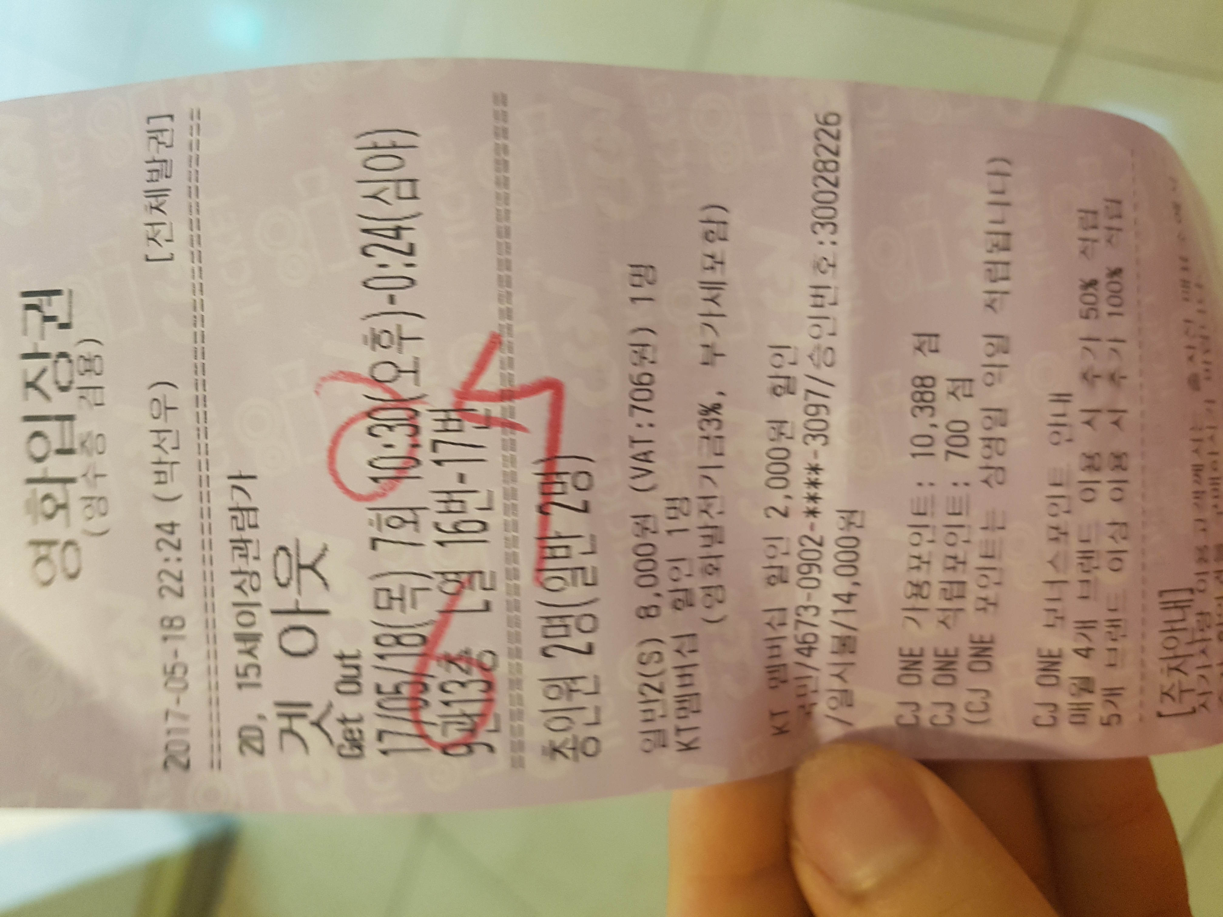 영화 겟 아웃을 보고 왔습니다 장르가 공포로 되어있는데 공포는 공포입니다. 귀신은 아니고 정말 사람이 무섭... 헐리우드 곡성이라고 소문이 났는데 느낌 있습니다 일단 감독이 코미디언으로 더 유명한 사람이고 연출작은 이게 처음으로 아는데 연출이 죽여줍니다 거를 부분없이 긴장감이 장난아니네요 주인공 친구나올때 살짝씩 풀어주면서 완급조절하며 몰아치는데 어휴.... 왓챠평점은 4.0줬습니다 커버넌트 3.5 가오갤2 3.5줬으니 참고하시구요 제 왓챠평균점수는 3점에 수렴하니 높은 점수입니다 영화 보고 전을 먹으면서 막걸리 한 사발했습니다 입은 즐거웠는데 귀가 썩었네요 518기념식 문재인대통령 이야기하고 있었는데 그 이야기가 어느 여성분의 심기를 거슬렀나 봅니다 톤이 저희를 들으란 식으로 이야기 하더군요 핵심적인 한줄만 말하면 518그새끼들처럼 문재인도 사형시켜야 한다고 제가 덩치도크고 되게 무섭게 생겼는데 절 못보셨나? 저랑 등돌리고 앉은 등치큰 아줌마였는데 그 반대편 아줌마는 안절부절하며 계속 제 눈치보고 말 화제를 돌리려 하지만 등치 큰 아줌마는 꾸준하게 딜을 넣더라구요 인천공항이 어쩌고 그거 다 내 세금인데 비행기값 비싸질거아냐? 거지새끼들 내 돈으로 먹여살려야돼? 보시다시피 전 나오는 접시가 무쇠로 되어있잖아요? 순간적으로 무쇠접시에 그 아줌마 얼굴 박아버리고 싶은 충동 들었는데 아 그래 겨우 이 정도가 내 수준이다 문재인 대통령은 저런 사람에게도 손을 내밀거다 하면서 참고 부들부들하고 있는 앞사람에게 참아 못 배워서 저러고 사는거야 냅둬 불쌍하잖아 사장님 여기 계산좀 해주세요 하고 나왔네요 덩치크고 무섭게 생겨서 살면서 시비 잘 안걸리는데 역시 아줌마들은 더 무섭습니다 3