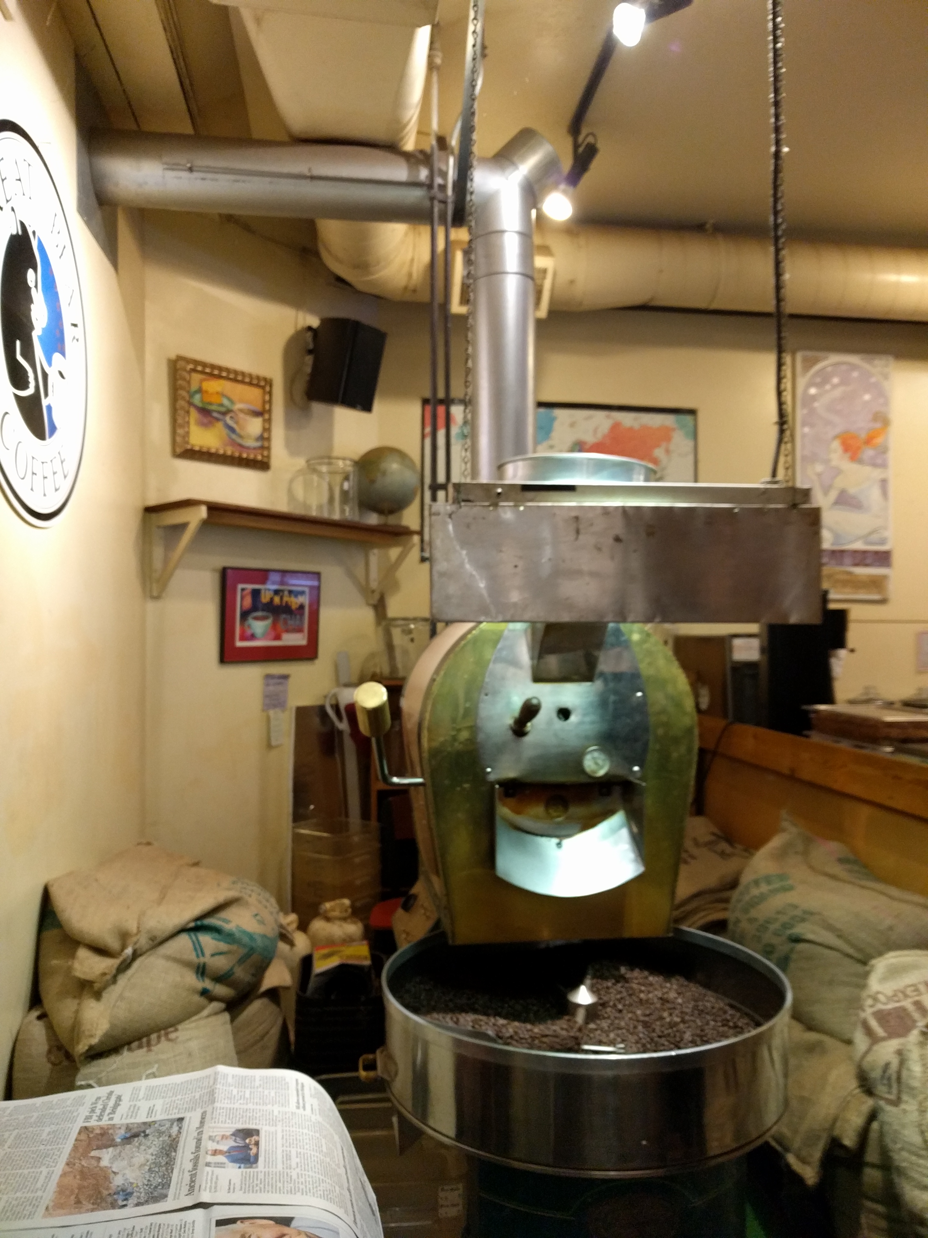 커피샵 문을 여는 순간 모처럼 비가내려서인지 거리에 안보이던 사람 모두가 커피샵 내에 있는것 처럼 한 자리도 비어있는 자리가 없이 사람들은 도란도란 대화를 나누고 커피 로스팅의 이국적인 향기가 가게안을  그윽하게 메꾸고 있었습니다.