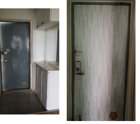 작년 말쯤(12월)에 아파트로 처음 이사를 왔습니다. 원래 주택을 사랑하는 사람으로서 적응하지 못하면 어쩌나 소음 걱정은 어쩌나 걱정을 많이 했습니다. but....! 대략 7월째 살고있는 이 시점 아......아파트는 너무 좋아요 +_+ 분리수거를 제대로 할 수 있고... 음식물 쓰레기도 제대로 처리할 수 있고, 정말이지 아파트는 천국입니다 (주차는...조금 힘드네요...ㅠㅠ) 크크....집을 보러 다니기 전 다행히 빈집이여서 들어오기 전에 인테리어를 했습니다(현관을 제외한 나머지) 신발장은 새로 키큰장으로 바꾸었습니다 겨울에는 추워서 현관문을 꾸미지를 못했고 봄이 되고서는 너무 졸려서 못했고....(핑계입니다.....ㅠ0ㅠ) 마음을 잡고 일단은 칙칙해 보이는 현관문에 필름지를 냅다 투척했습니다 (처음 한거 치고는 잘했다고 해주세요ㅠㅠ 키도 작은데 의자밟고 열심히 했습니다) 이제...남은 숙제는 현관문틀?인데요 사진에 보시는바와 같이 구멍이 송송송 뚫려있습니다 칠이 벗겨진거는 페인트를 칠하면 될거 같은데 저 구멍은 무엇으로 가려야 할지....흠.... 좋은의견 부탁드립니다~~ 0