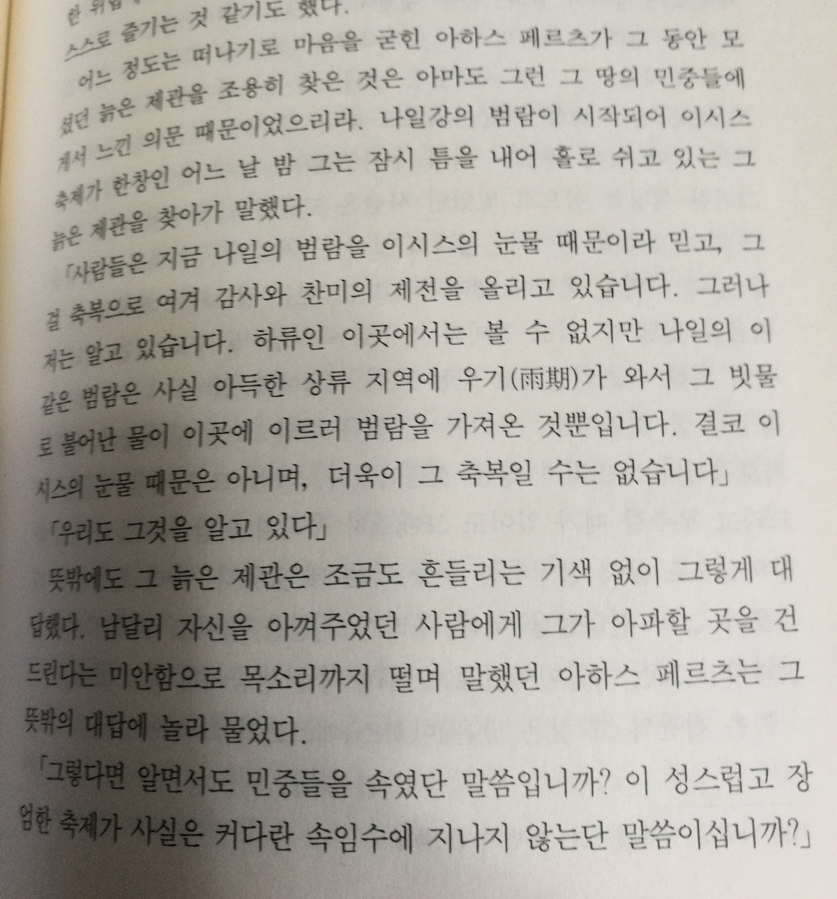 타임라인에서 삼국지 떡밥이 나와 관련 이야기를 끄적거리다가 타임라인 글자수가 넘어가서.. 흑 짤은 이문열 <사람의 아들>의 한장면입니다. 액자소설속 주인공 아하스페르츠가 민중들이 어째서 부패한 종교에 의혹이나 항의 대신 자신을 내맡기는지 의문을 품는데 그에 대해 제관이 설명을 해줘요. 삼국지 얘기랑은 아무고토 상관이 없는데 그냥 이말 저말 하다 보니까 옆동네의 1984이중사고 떡밥과 관련해서 생각나서 같이 올려 봤습니다. 밑으로는 원래 타임라인에 적으려던 내용입니다. . . 개인적으로 고우영삼국지나 삼국전투기,창천항로등이 일반적으로 많은 찬사를 받는 것에 비해 이문열 삼국지는 과다한 비난을 받고 저평가당한다고 생각하는데, 그 비난에 가장 정당성을 부여해 주는 이유는 <정사인 척했다> 는 겁니다. 만약에 이문열 삼국지가 쓰여지지 않은 상태에서 조아라나 문피아 같은 곳에 한 무명 작가가 "제가 재창조한 삼국지 입니다"라고 선언한 후 정사드립 없이 연재했다면 그냥 언터쳐블 레전드가 되었을 겁니다. 삼국지 뭐 읽을까요 하는 질문이 나오면 추천보다도 <일단 이문열은 읽지마> 라는 답변부터 줄줄이 이어지는데, 구라인거 알고 읽으면 이문열 삼국지 따라갈만한거 별로 없습니다.. 그냥 읽어도 돼요.. 이문열 삼국지 읽는다고 제갈량 관우 제거설 믿게 되지 않습니다.. 이문열 삼국지 읽어도 이문열 삼국지 잘 비판할 수 있어요.. 그리고 나 촉빤데 이문열 위빠 조조빠라면서요? 라는 분들.. 이문열 삼국지만큼 유비 관우 장비 조운 제갈량 등등 잘 미화시켜놓은 소설 없습니다.. 물론 구라쳐서 미화시켜 놓긴 했지만.. 저는 심지어 요화라는 듣보잡까지도 얼마나 멋있어 보이던지요.. 유비가 서서를 떠나 보내는 장면이 얼마나 애절하던지.. 관우의 오관돌파와 제갈량의 북벌에서 보여지는 충성과 의리.. 절대 정사 중심의 삼국지에서는 그 아름다움 이문열삼국지만큼 못느낍니다. 김준영과 변형태의 결승5경기가 불멸의 명승부로 남을수 있었던건 온게임넷 해설자들의 오판이었죠. 저그는 위기인거 같아도 자원줄 잘 지키면서 차근차근 디파일러 울트라 체제 준비해나가고 있었고 변형태는 실속없이 센터 이리저리 방황하면서 (해설자들은 센터를 잡고 있다, 라고..) 베슬관리 못하고 드랍십 격추당하고 있었는데.. 저그가 불리한 게임을 극적으로 역전승한 것처럼 포장했고 시청자들과 현장의 관중들은 열광했죠. 시청자들이 바보여서가 아닙니다. 속아주고 감동받고 싶은거에요. 이문열의 자전적 소설인 '변경'에 그런 이야기가 나옵니다. 국민학생이었던 이문열은 또래들한테 관심받고 싶어서 거짓말을 했다가 그들 중 리더격인 한명이 그 거짓말의 진위 여부를 확인해보자고 나와 곤경에 처합니다. 속으로는 그때라도 사실대로 고백하고 싶었지만 자존심 때문에 확인해 보라고 배짱을 부립니다. 드디어 진실이 밝혀지고 이문열이 나락으로 떨어지려는 그 찰나에, 처음에 확인하자고 했던 리더가 갑자기 "어! 진짜네, 문열이 말이 맞았어"라고 나오고, 친구들도 거기에 동조하더라는 겁니다. 안도의 한숨을 쉬며 위기를 모면한 이문열은 몇년 후 재회한 그 리더격의 친구에게 사실 그때 네 거짓말 믿고 싶어서 속아준거라는 말을 듣습니다. 그때 예감했다고 합니다. 자신이 사람들이 원하는 거짓말을 제공하며 평생을 살아갈 것이라고. 물론 지금에 와서 돌아보면 그의 인생이 좋지 않은 방향으로 흘러와 버렸고 비난을 피하지 못할 행적을 쌓기도 했습니다만 어쨌든 소설가가 된다는게 그런 성격을 가지고 있다는 이바구 입니다. 물론 그렇다고 이문열 삼국지에서 정사 운운한게 변호가 되는것은 절대 아니지만, 독자가 필터링을 하면서 읽으면 삼국지 입문자에게 충분히 추천할만한 책이라는게 제 개인적 의견입니당 3