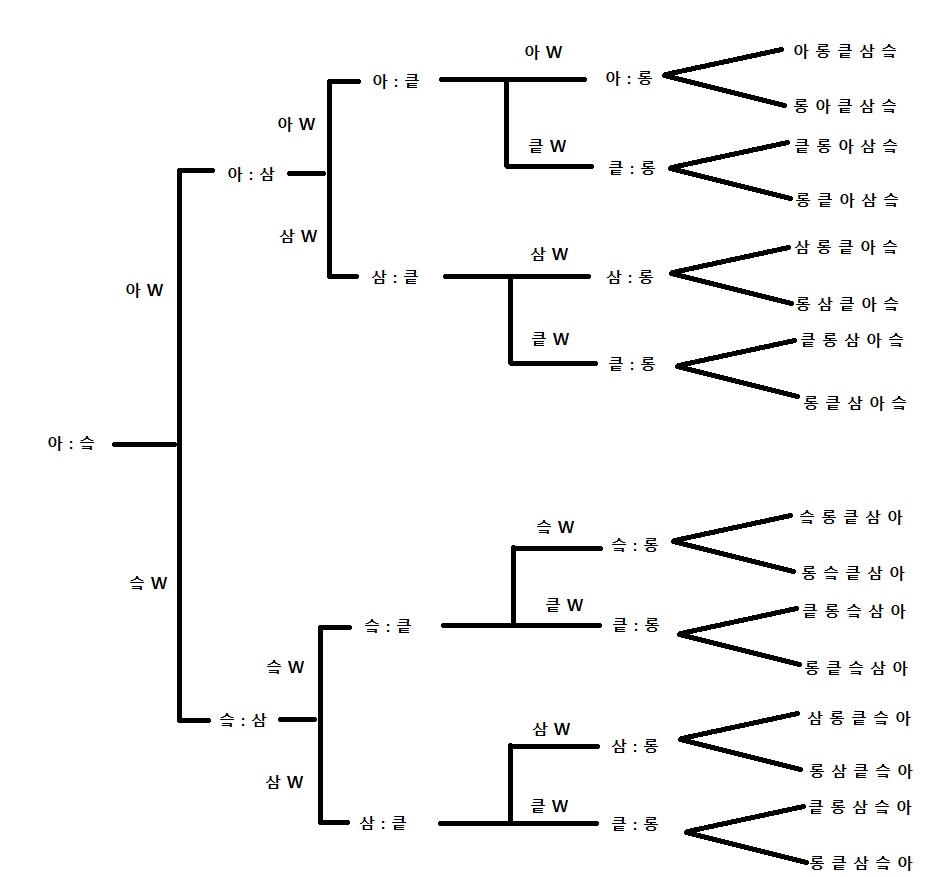 KT - 81.25% (자력 50% / 경우의 수 31.25%) 롱주 - 50% 삼성 - 31.25% (자력 25% / 경우의 수 6.25%) SKT - 31.25% (자력 12.5% / 경우의 수 18.75%) 아프리카 - 6.25% KT, 삼성, SKT는 '결승 진출 시 직행 확정' 아프리카가 결승 진출 시 'KT가 직행 확정' 이 되며, 롱주가 준우승 했을 경우에 '경우의 수'가 발동합니다. -.-; 롱주와 아프리카는 우승밖에 답이 없기 때문에 단순한 확률... 이 나온.. 2