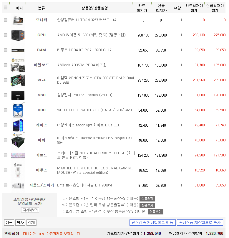 | Subject | 컴퓨터 견적 150만원대 뽑아왔습니다. 구매 하루전. 많은 조언바랍니다.(키보드,모니터,스피커 포함가) |