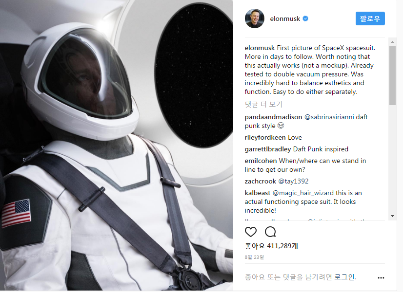 SF 영화속에서 등장하는 어썸한 디자인의 우주선과 우주복이 점점 현실이 되어 가는거 같네요.