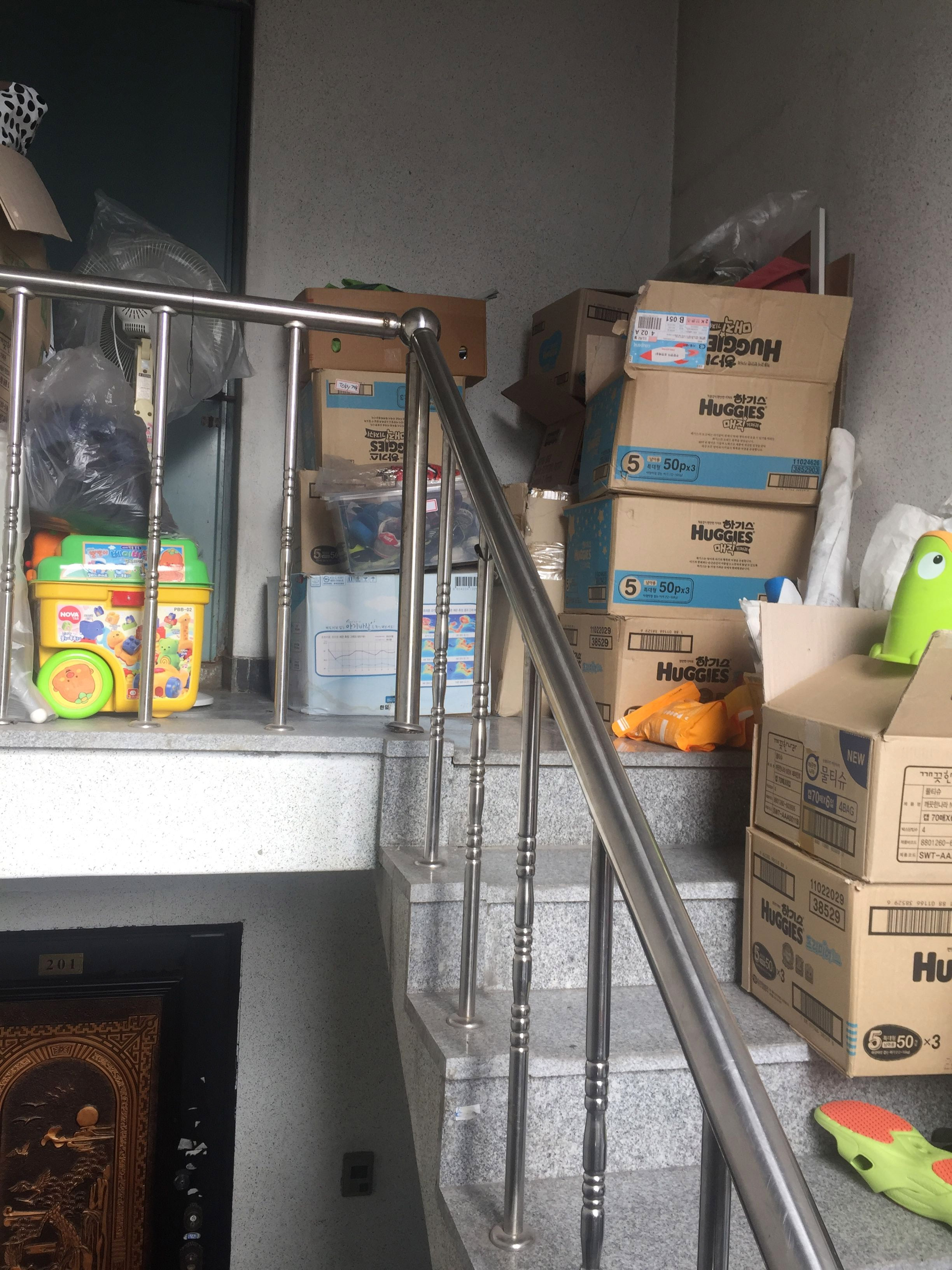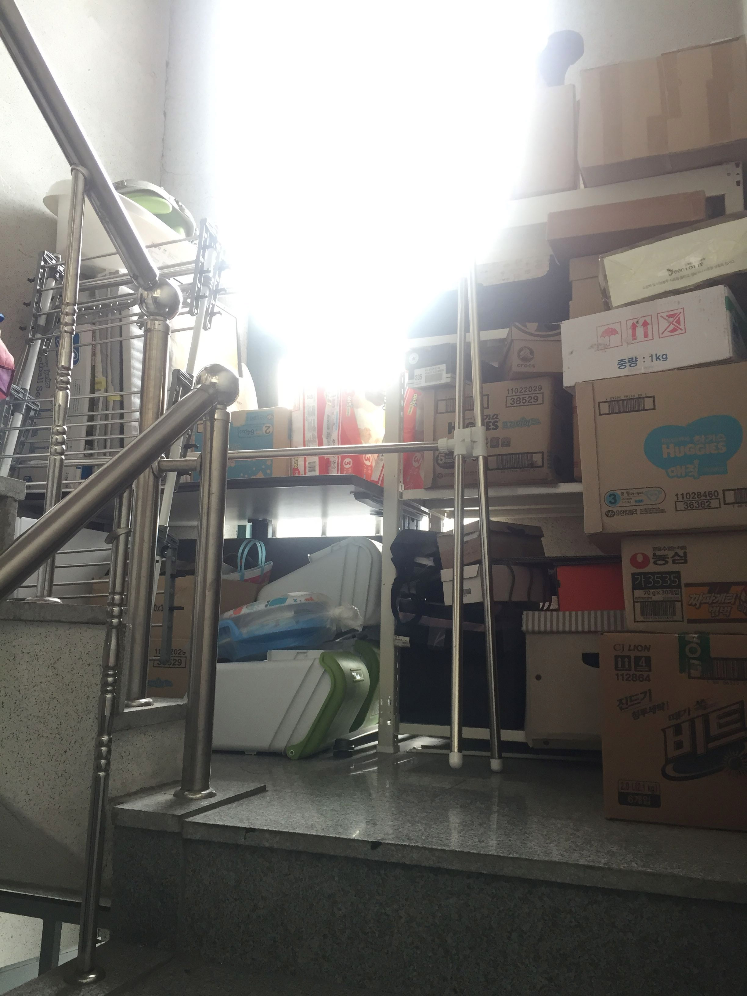 창고가 있는 집에서 살다가 옥상 올라가는 계단을 쓸 수 있는 꼭대기층으로 이사오다보니 계단이 온통 창고가 되어있는데요.