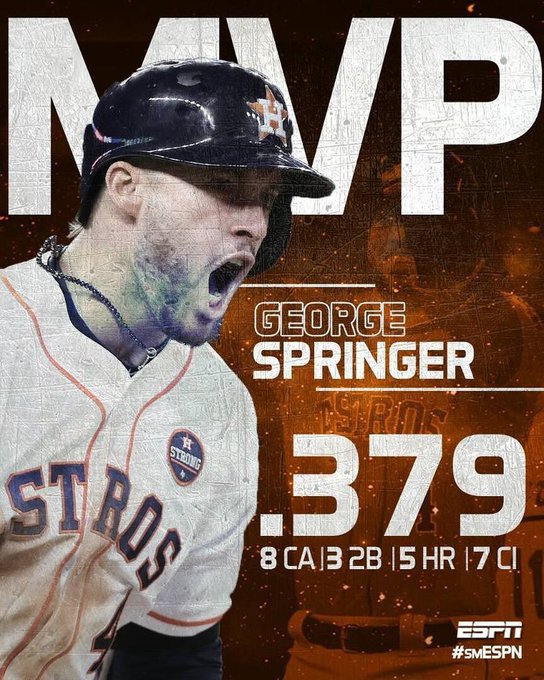 이번 월드시리즈 MVP는 5홈런 7타점을 기록한 스프링어가 차지했습니다