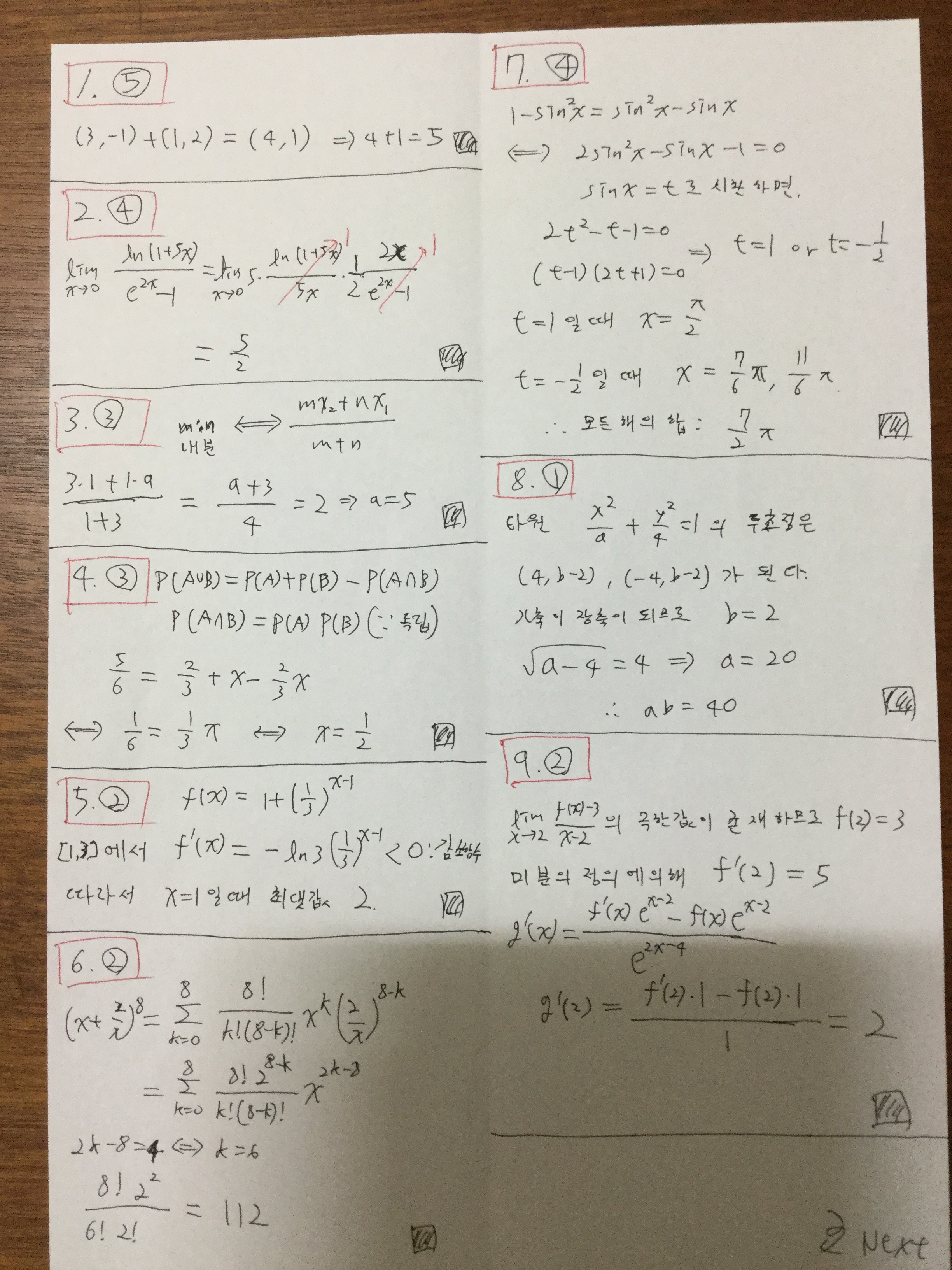 2018학년도 대학수학능력시험 수학영역 가형(홀수) 대충 풀어봤습니다.