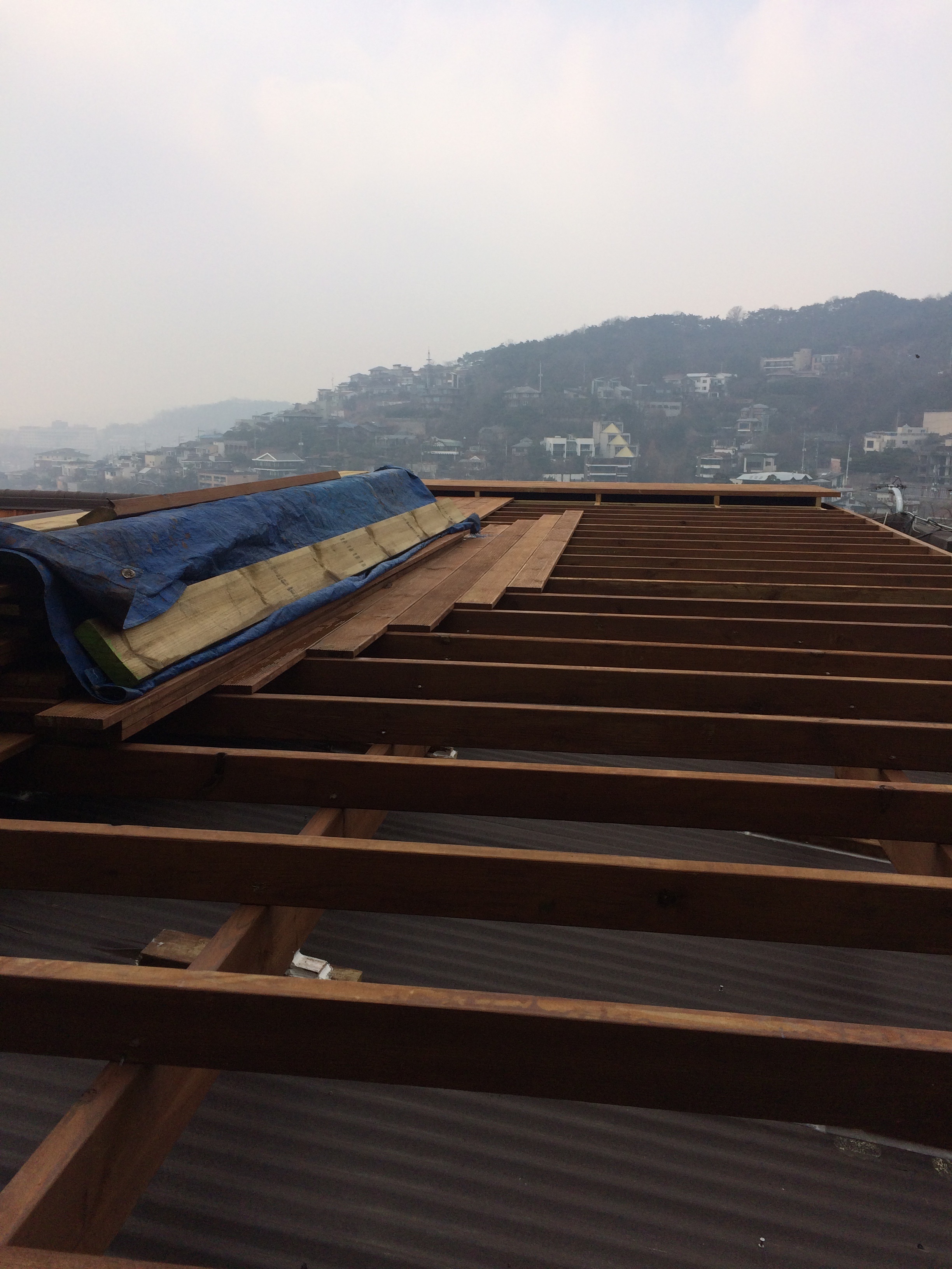 제 집 베란다는 넓습니다. 따뜻한 날에는 바베큐 파티를 하고, 곳곳에 고추, 파 같은 걸 심어 따먹었지요. 다시 말해야겠네요. 제가 세를 얻어 사는 집의 베란다는 넓습니다. 베란다가 마음에 들어 계약할 때 주인분에게 아예 흙을 덮어 이것저것 심어도 되냐고 물으니, 마음대로 하시라고 해서 우앙, 했지만 당연히 귀찮음이 가로막았지요. 흙수저 이야기하지만 흙 비쌉니다. 그것도 한몫했고. 화분에만 키웠습니다. 그런데 제 집 주인과 아랫집 주인이 서로 다릅니다. 다시 말하면 베란다의 권리는 아랫집 주인 것입니다. 사용하는 건 윗집이고요. 얼마전 베란다 상태에 대해 이야기가 나왔습니다. 아랫집에 비가 새고, 태풍 같은 게 오면 외곽에 둘러친 기와가 날아가 위험하고 등등.... 그래서 아랫집 윗집 주인들(서로 사이는 나쁩니다만.)이 소곤소곤 속닥속닥거려 서로 부담하여 베란다 공사를 하기로 했습니다. 저는 방수제 바르는 정도일 줄 알았습니다. 베란다가 뾰족한 삼각 지붕이 되었습니다. 실 사용자였던 저는 이건 뭥미? 뭘 심을수도, 파티도, 아무것도 못하는 공간... 설마 했지만 주인님은 공사 내내 와 보시지 않으셨습니다. 주인님에게 사진을 전송하고 이 공사는 집값도 빠지겠다 하니 자신도 이럴줄은 몰랐다.... 친람하시곤 아랫집이랑 서로 부담했는데 아랫집이 발주해서 자기 편한대로 방수만 얘기해서 지붕 구조가 됐네... 안타까워하시며 돌아가셨습니다. 그 뒤, 베란다가 어쨌든 평평해야 자기 집에 세 든 저 같은 사람들이 활용하고 들어오겠으니 다시 공사하겠다고 했습니다. 오케이, 좋아. 그래서 공사하고 있는 게 위 사진의 형태입니다. 지붕 위에 데크를 펼치고 있죠. 참고로 말씀드리면 베란다에서 지상까지 약 20m입니다. 난간도 없고, 떨어지면 죽죠. 비자발적 자살자 나올 각. 어처구니 없지만 그냥 보고만 있습니다. 주인님은 다시 와서 어 이건 아닌데 하겠죠. 다시 공사할 걸 공사하고 있는 걸 보고 있습니다. 그래도 못 다한 이야기 1. 종합 지식정보 커뮤니티 홍차넷 티타임이니 이 글의 주제를 이야기하자면 붕 뜬 권리행사의 참혹함 입니다. 베란다 보면서 제 자신을 반성합니다. 그래도 못 다한 이야기 2. 제 주인님은 연예인입니다. 계약할 때 보곤 어, 어어? 입이, 손이 근질거려 죽겠지만 참습니다. 나중에 혹 틀어지면 이 글 폭로하겠다고 해야지. 0