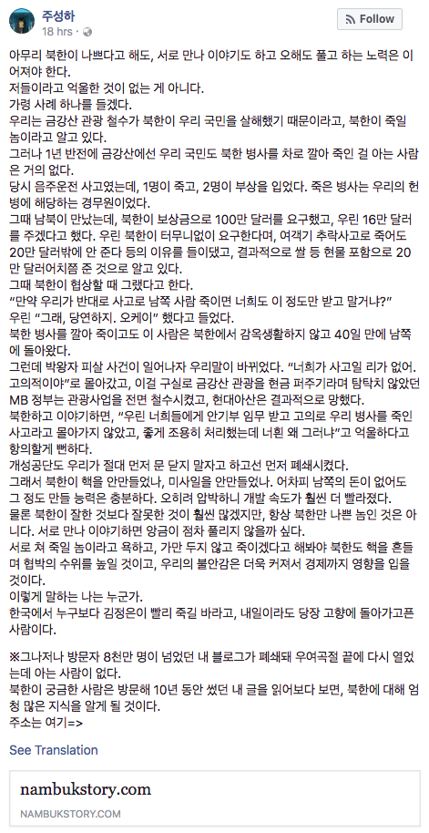 북한 방문단의 애국가 제창 기립 건에 대해 페북에 올렸던 분석으로 화제가 되었던 주성하 기자의 다른 포스팅이 눈에 띄어서 퍼옵니다.