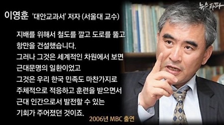 우리나라 근현대사 학자들은 사실 대부분 식민지근대화론 전문가들이시죠, 식민시대와는 어떻게든 다 엉켜 있으니까