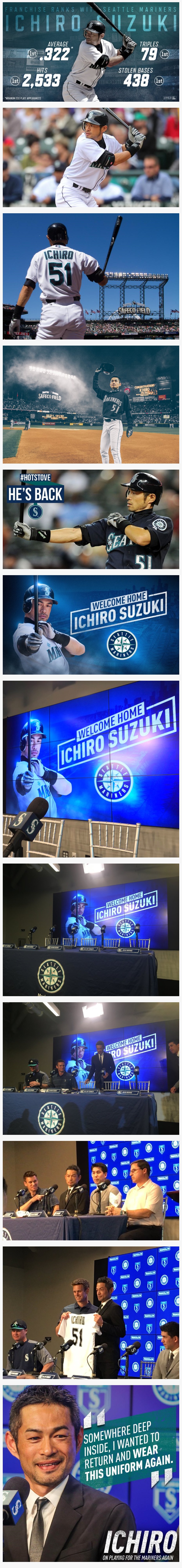 Seattle Mariners Executive Vice President & General Manager of Baseball Operations Jerry Dipoto announced today from Spring Training that the Mariners have agreed to terms with free agent outfielder Ichiro Suzuki. 안녕하세요 김치찌개입니다! 이치로가 친정팀 시애틀로 복귀합니다 시애틀에서 12시즌 동안 타율 .322 안타 2,533개 3루타 79개 도루 438개를 기록했고 현역선수중에 통산 안타 1위입니다(3080개,통산 21위) 그야말로 레전드죠! 친정팀에서 마무리하게 되어서 다행이네요 올시즌 기대됩니다~ 0