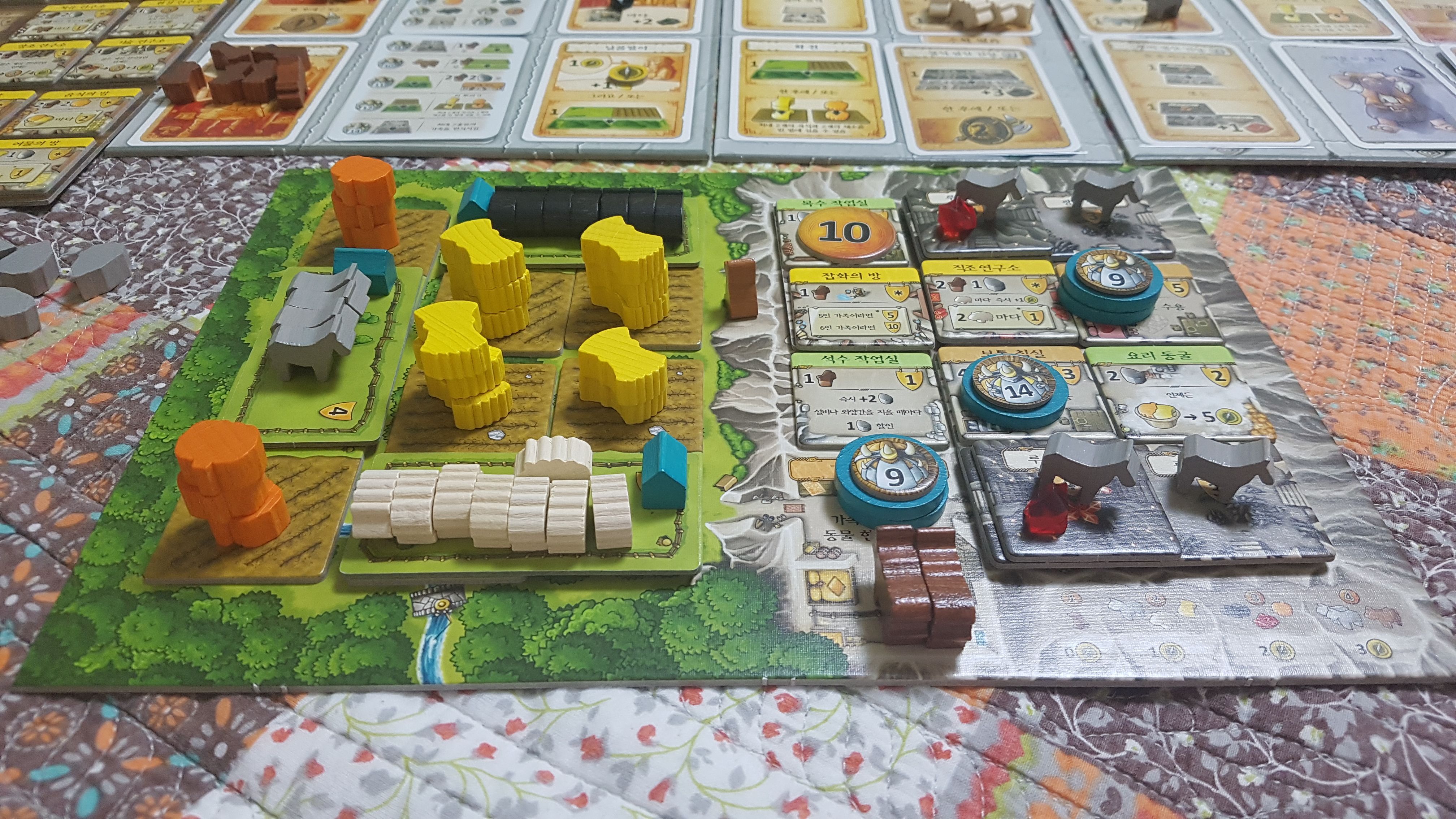 전반적으로 아그리콜라의 사촌이지만 홀로서기에 성공한 스핀오프 같은 느낌의 게임이었습니다. 개인적으로는 뤄양처럼 아예 테마만 유사할 뿐 다른 시스템을 가진 무언가가 되었으면 어땠을까 하는 아쉬움이 있지만 뤄양의 난잡한 게임 시스템을 겪어보면 또 그런 말이 쑥 들어가죠. ㅠㅠ 올해 안에 다른 종족으로 플레이 할 수 있는 확장팩이 나온다고 하니 부족한 볼륨에 대한 문제는 확장팩을 통해 해결할 수 있지 않을까 하는 기대도 드네요.